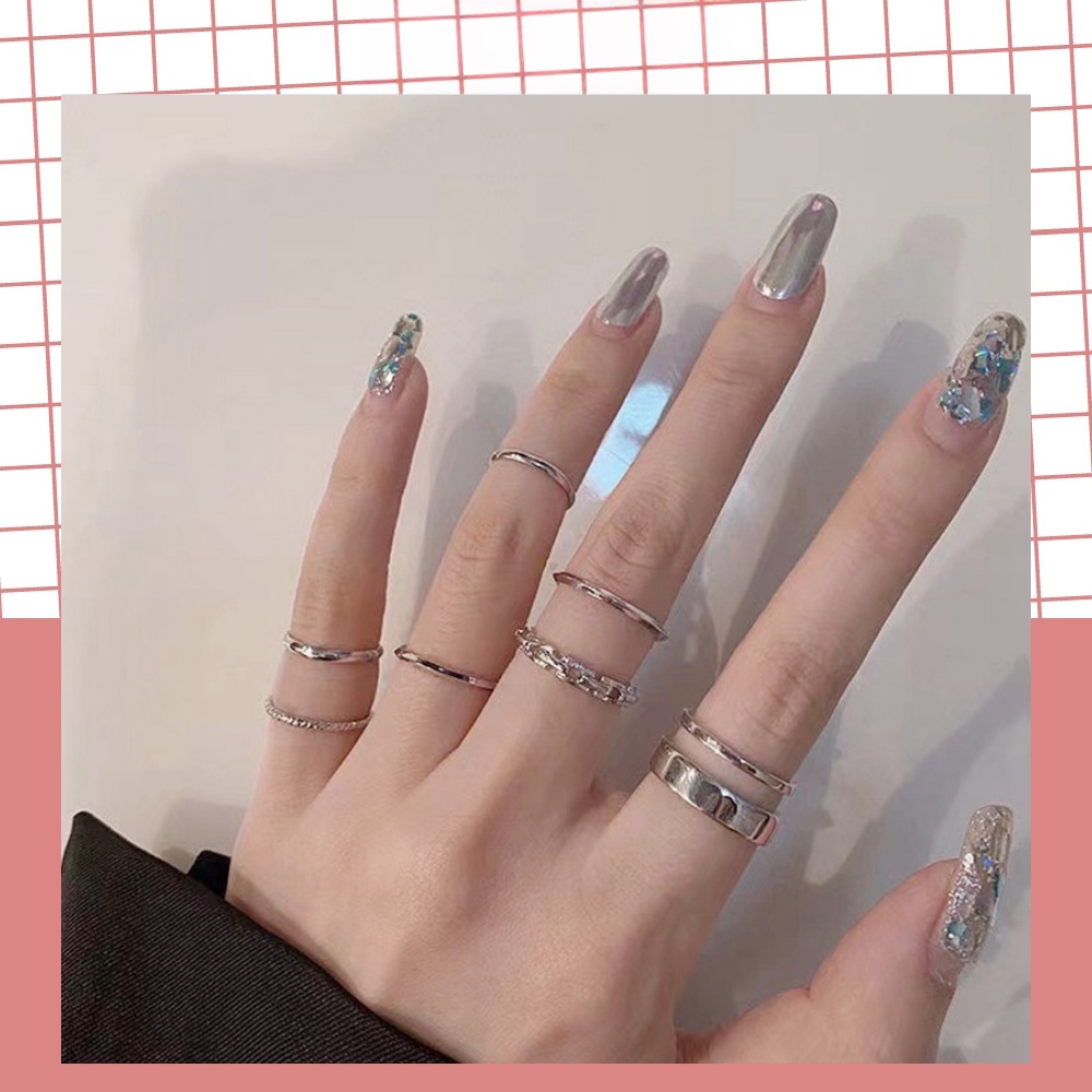 Chaoku ชุดแหวน ไร้สี สไตล์เกาหลี ฮิปฮอป เครื่องประดับ สําหรับผู้หญิง นักเรียน