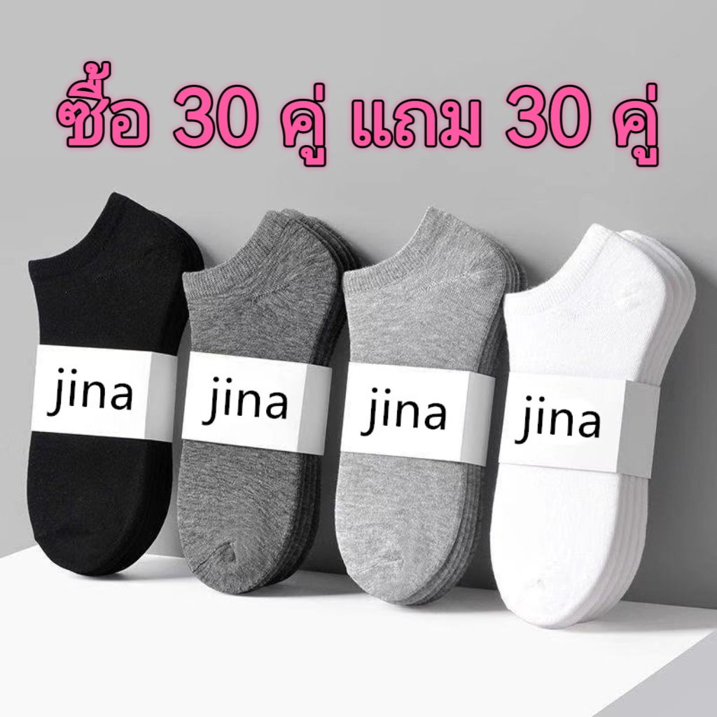 JMS STORE [ซื้อ 30คู่ แถม 30คู่ ] ถุงเท้าแฟชั่น ถุงเท้าสีพื้ ข้อสั้น ใส่ได้ทั้งหญิง-ชาย (ราคา ต่อ 20-60คู่ )