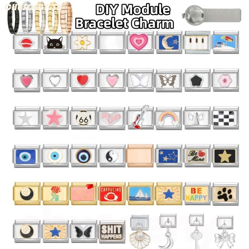 DIY ภาษาอิตาลี เสน่ห์ สร้อยข้อมือ ข้อต่อฟิตติ้ง 9 มม ใหม่ โมดูลเชื่อมโยง สเตนเลส 9 มม. สําหรับทําเครื่องประดับ สร้อยข้อมือ DIY
