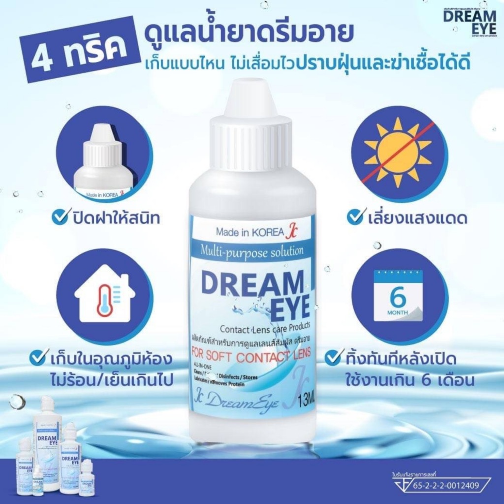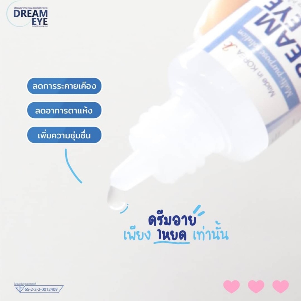 เป็นสารหล่อลื่นเพิ่มความชุ่มชื้น เผื่อช่วยให้ความชุ่มชื้นเคลือบติดตาได้นานขึ้น และบรรเทาอาการระคายเคืองนัยน์ตา รักษาอาการตาแห้ง หรืออาการรู้สึกไม่สบายตา จากการโดนลมและแสงแดด ขนาด Comfort 10 ml Dreameye 13 ml