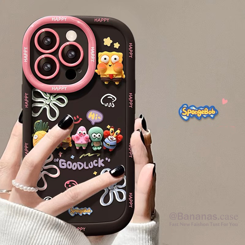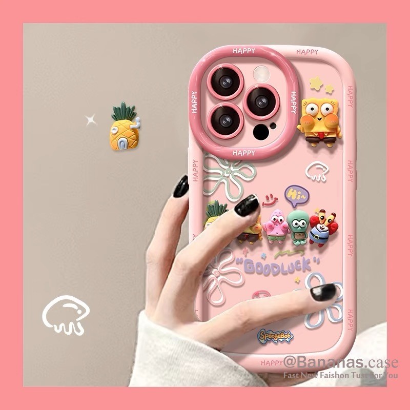 Iphone 16 15 14 13 12 11 Pro Max X Xr Xs Max 7 8 Plusเคสโทรศัพท์3D DIYการ์ตูนSpongeBobฝาครอบโทรศัพท์นุ่ม