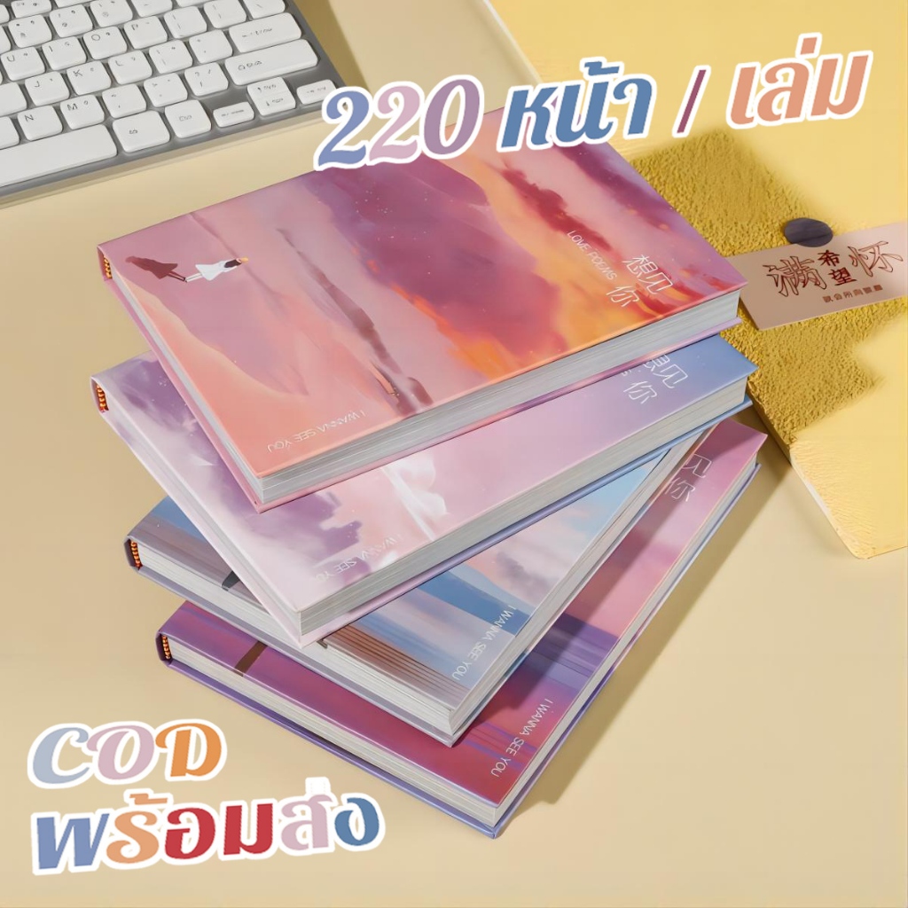 220 หน้า สมุดปกแข็ง โน้ตบุ๊คสี ด้วย ภาพประกอบท้องฟ้า สมุดโน๊ต สำหรับนักเรียน อุปกรณ์นักเรียน