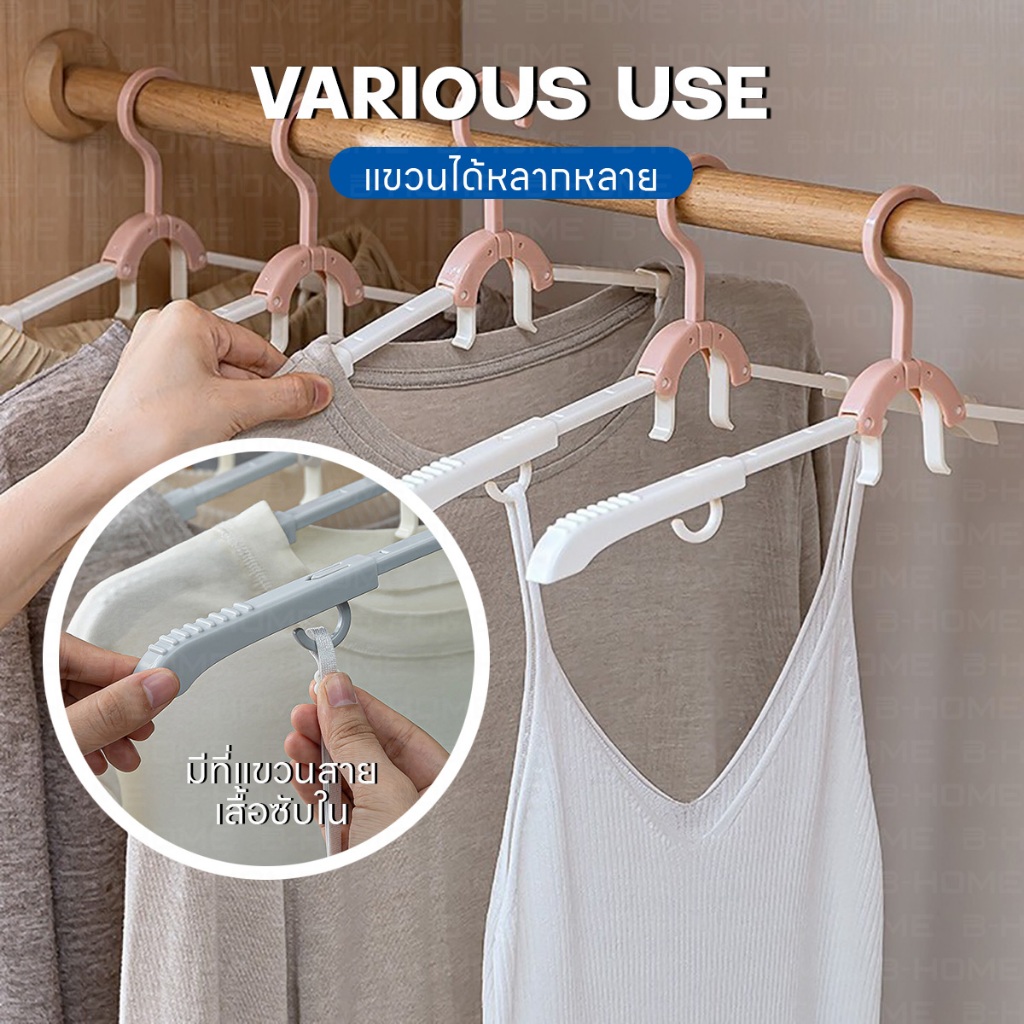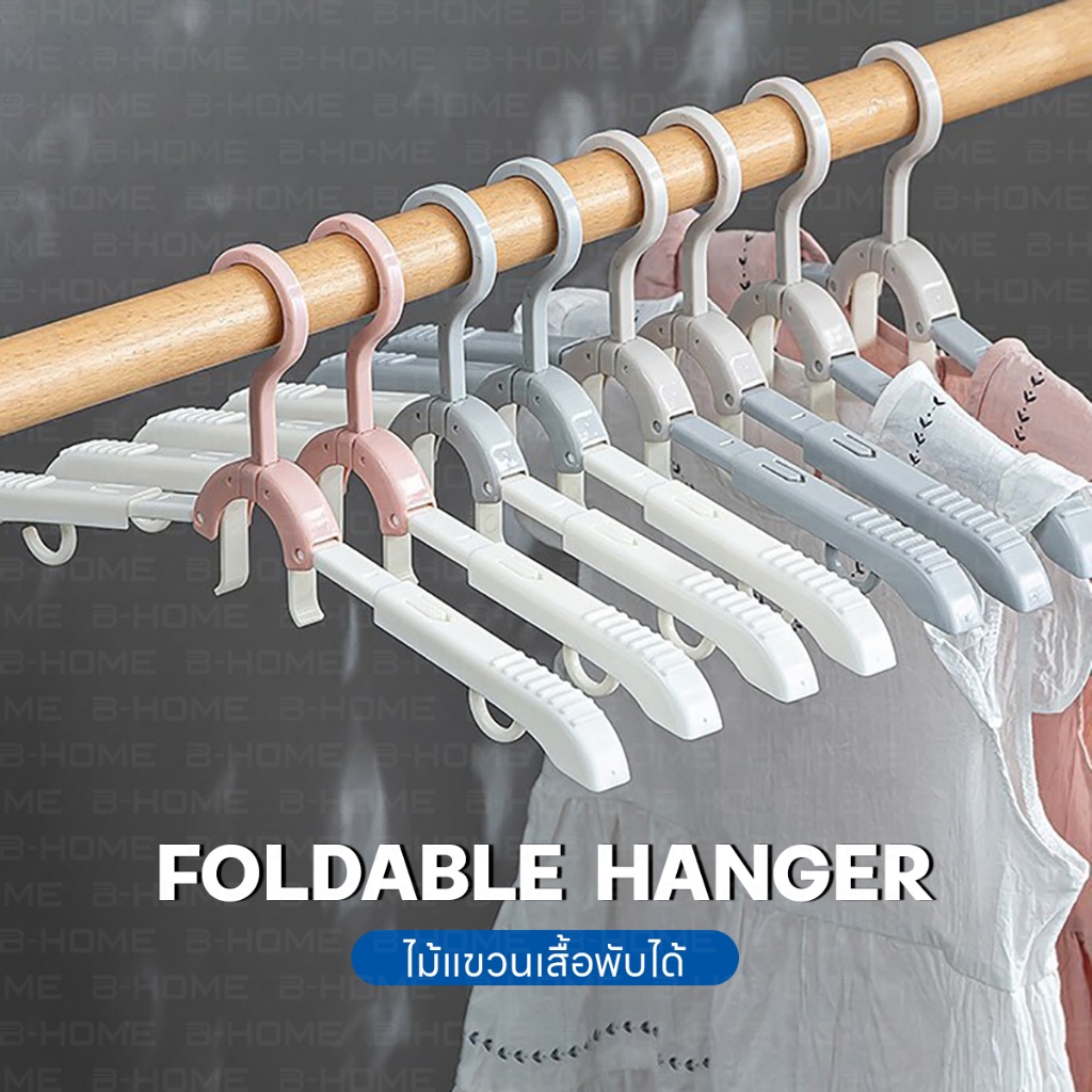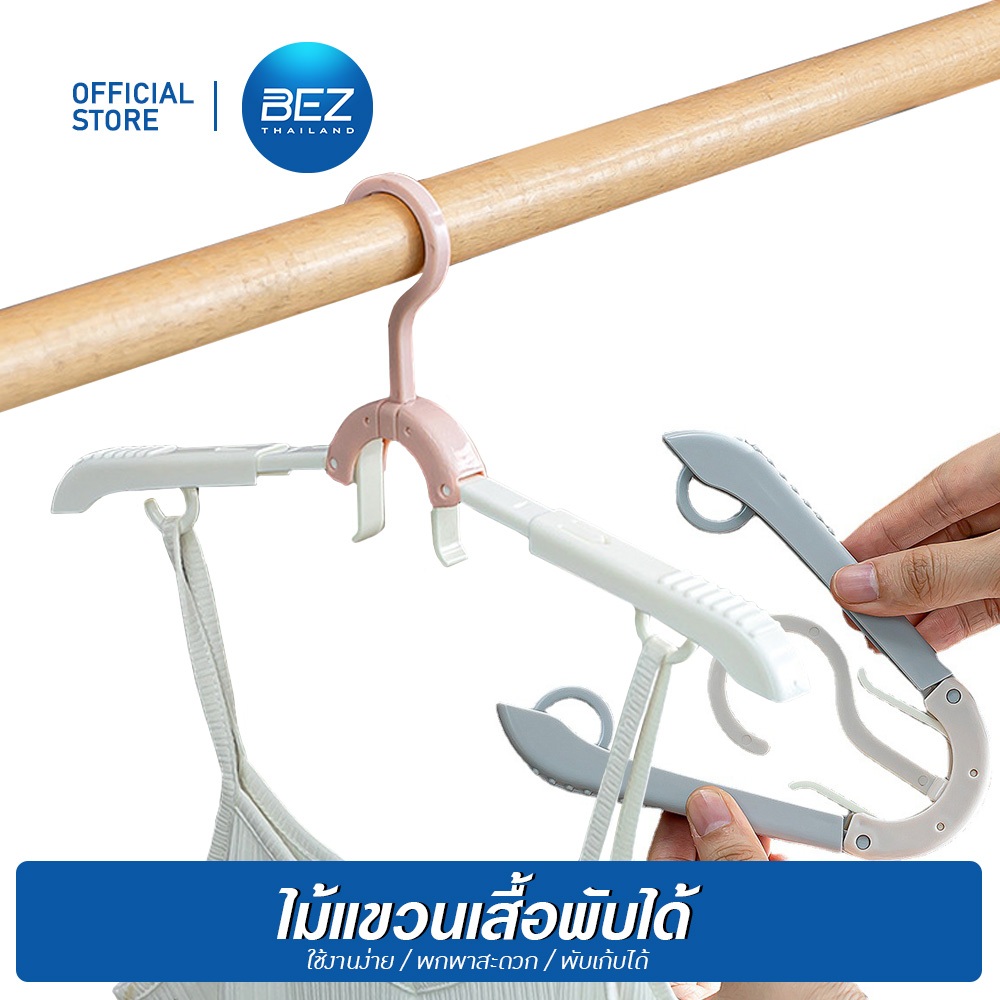 BEZ ไม้แขวนเสื้อ พับได้ ยืดได้ คุณภาพดี ประหยัดพื้นที่ จัดส่งฟรี กันลื่น แขวนเสื้อไม่หลุด