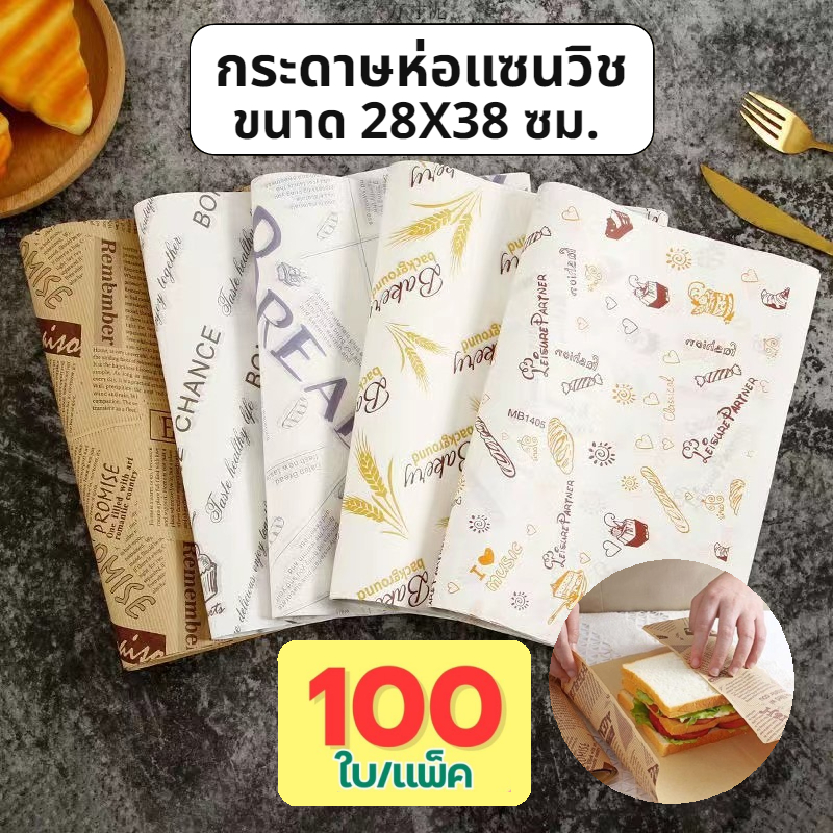 กระดาษห่อแซนวิช (100ใบ/แพ็ค)ขนาด 28*38 ซม. ห่อเบอร์เกอร์ เบเกอรี่ ห่ออาหาร และรองอาหาร