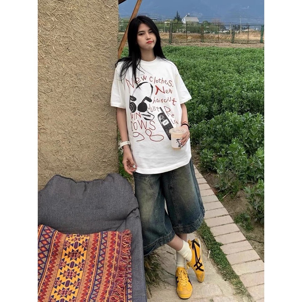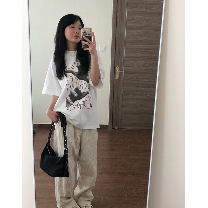 COD✅ (จัดส่งในกรุงเทพฯ) MAO Shop เสื้อoversize เสื้อยืดลําลอง แขนสั้น คอกลม พิมพ์ลายตู้เสื้อผ้า พิมพ์มือ ผ้าโพลีเอสเตอร์