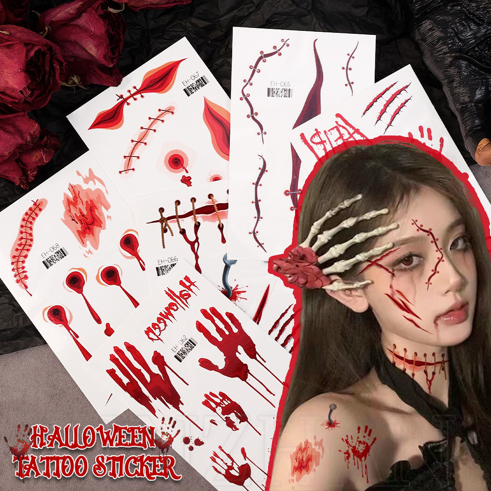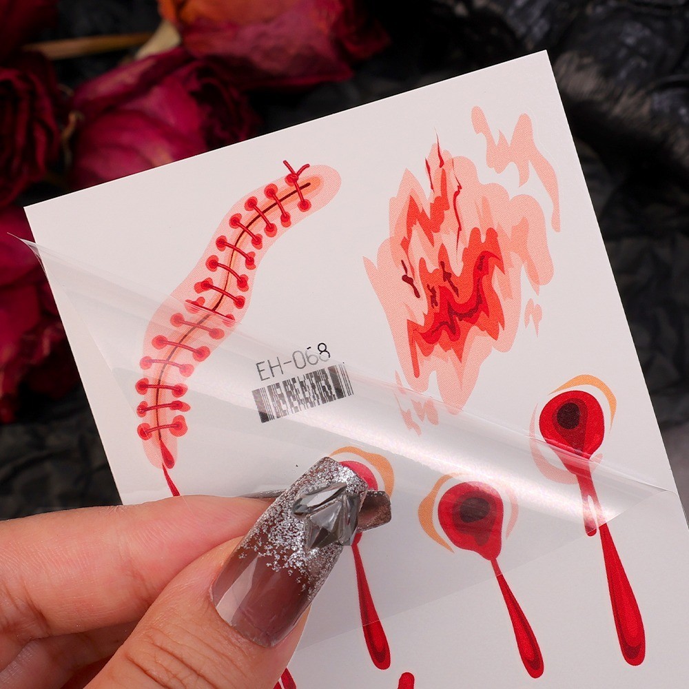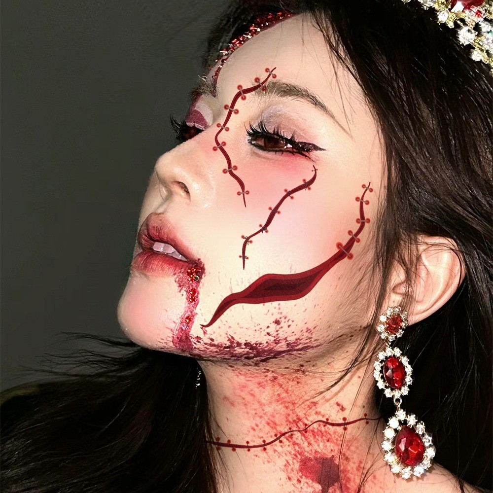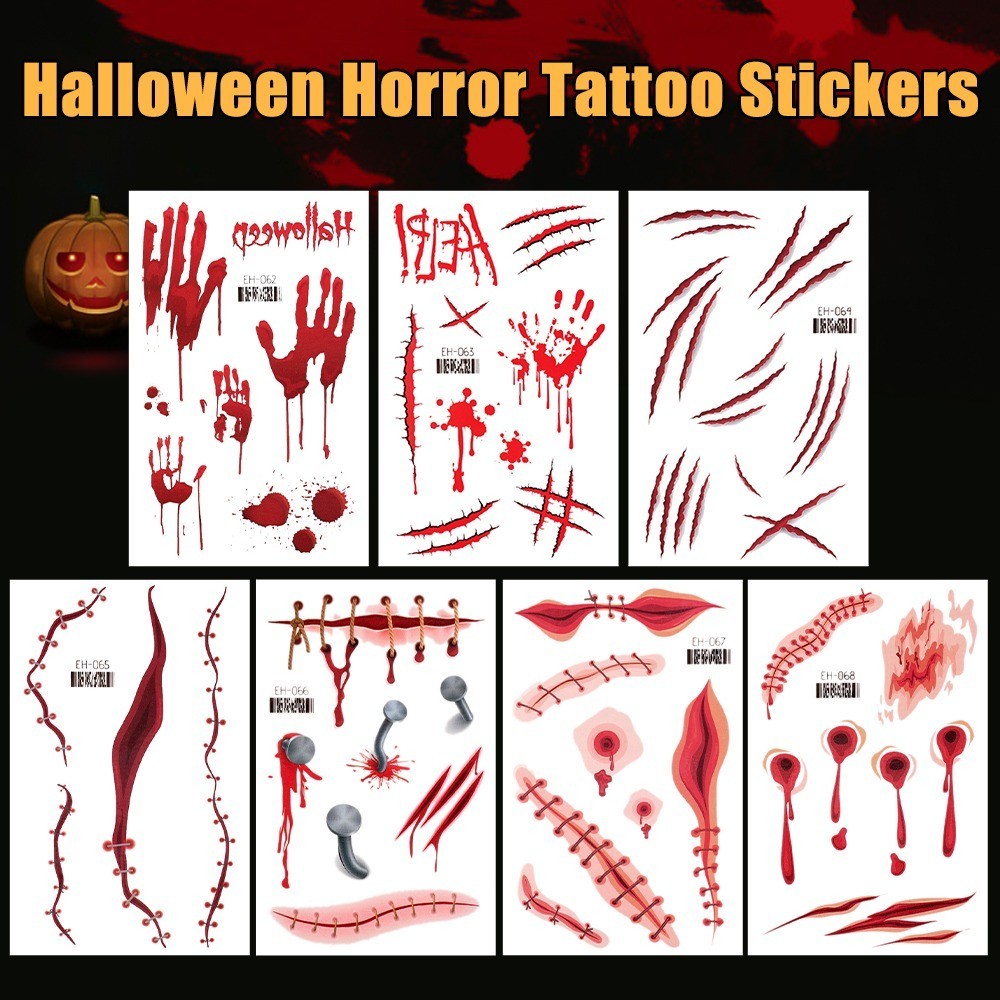 คอสเพลย์ Masquerade Party Decor - กันน้ําสมจริง Body Art Tattoos Decals - สยองขวัญรอยแผลเป็นแผลแต่งหน้าสติกเกอร์ - ฮาโลวีนชั่วคราว Tattoo สติกเกอร์ - สยองขวัญ Props