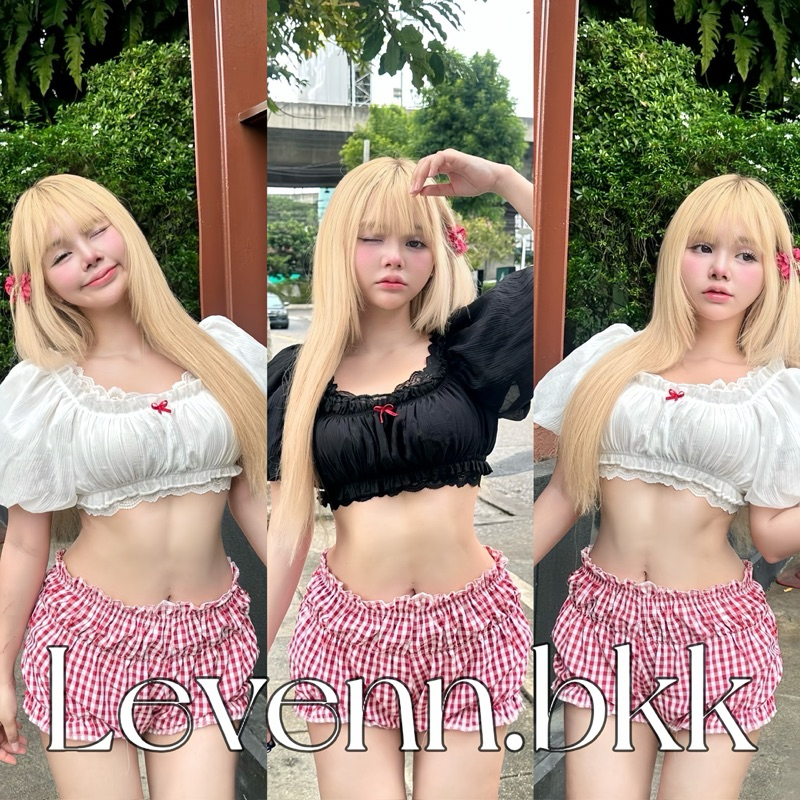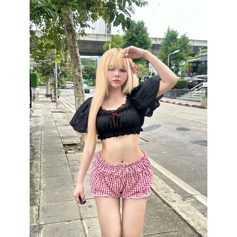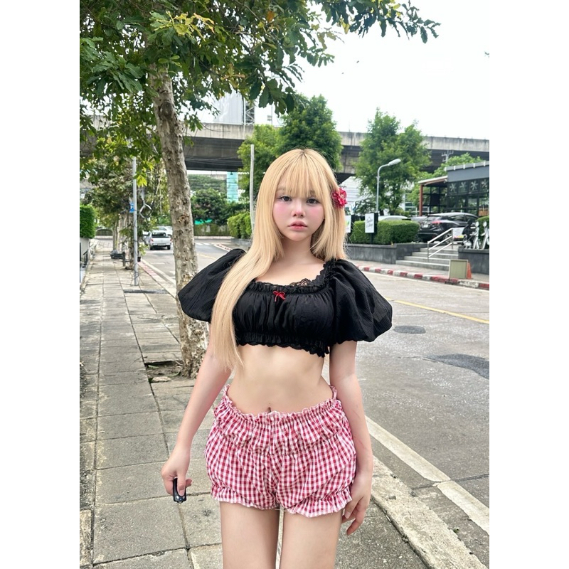 เสื้อครอป แขนบอลลูน ทรงครอปน่ารัก ซุกซน ️ แนะนำเป็น สาว s,m อก (B) : - 36“ Color : 2 สี - ดำ - ขาว