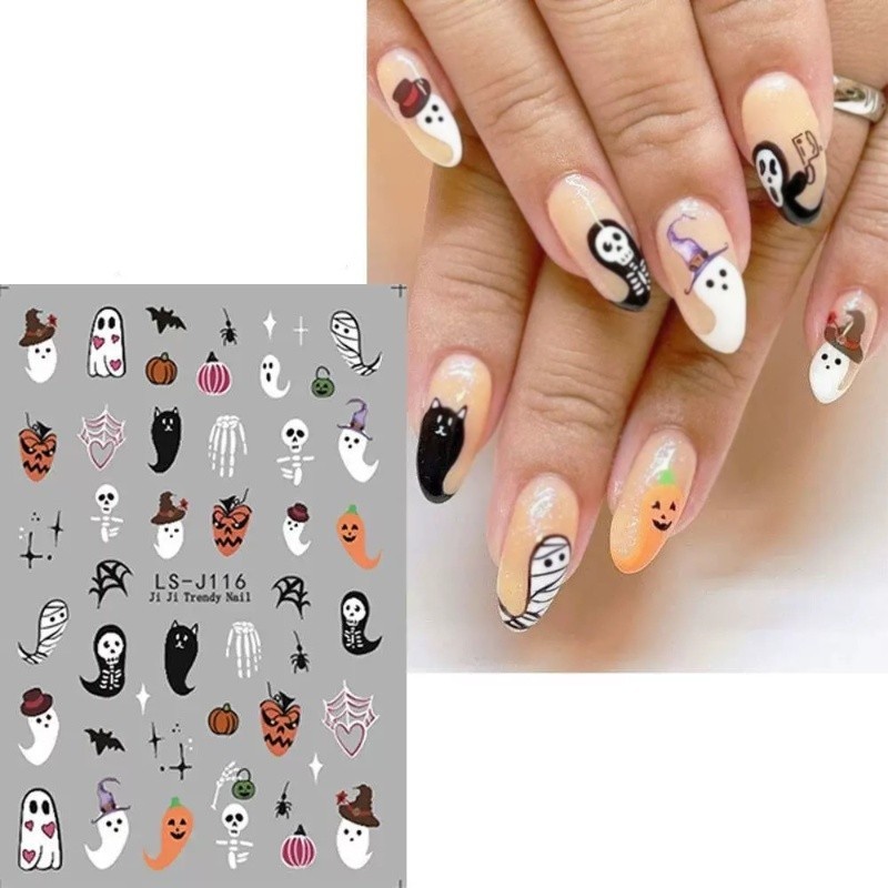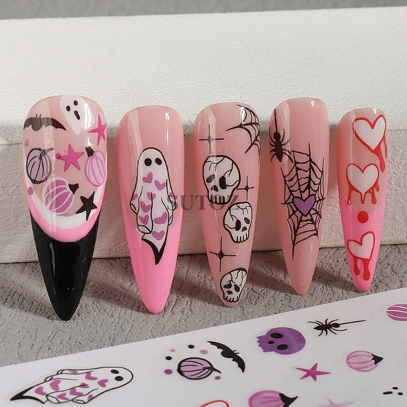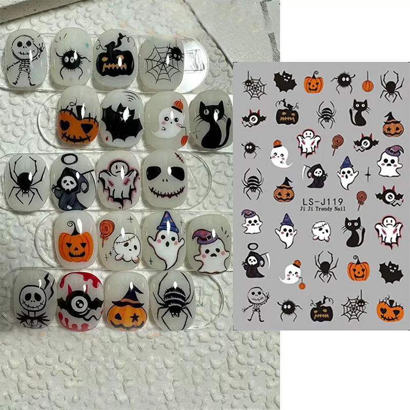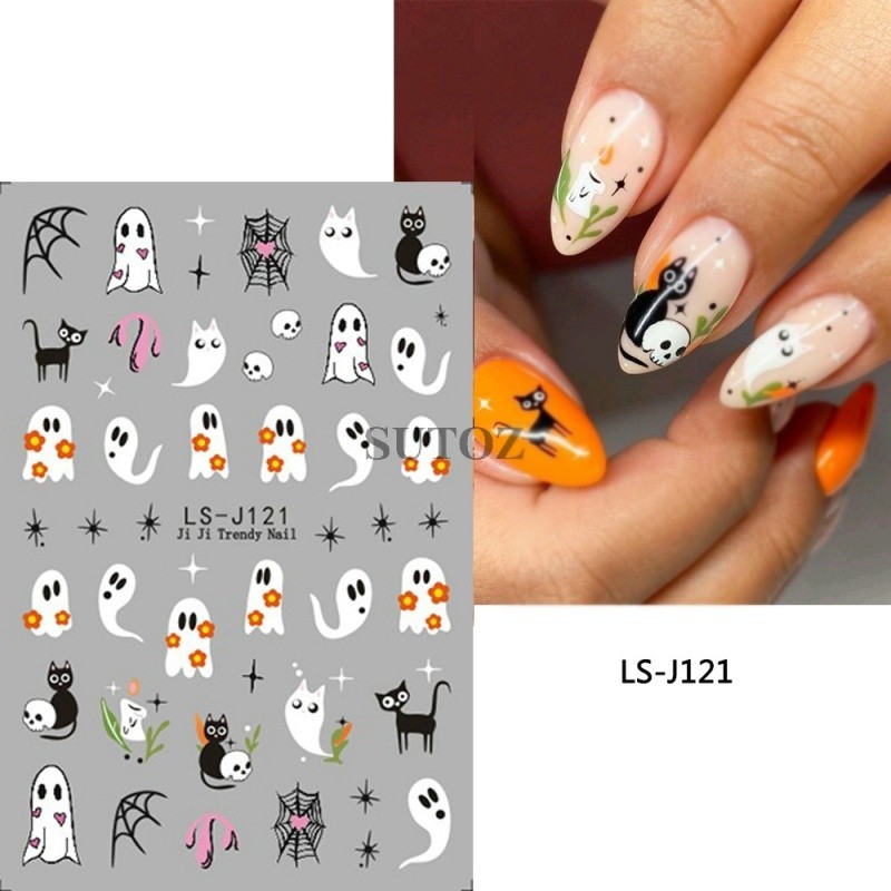 สติ๊กเกอร์ติดเล็บตกแต่งเล็บฮาโลวีน 3D มินิสติกเกอร์การ์ตูนผีตลกฟักทองแม่มด KOUDAN