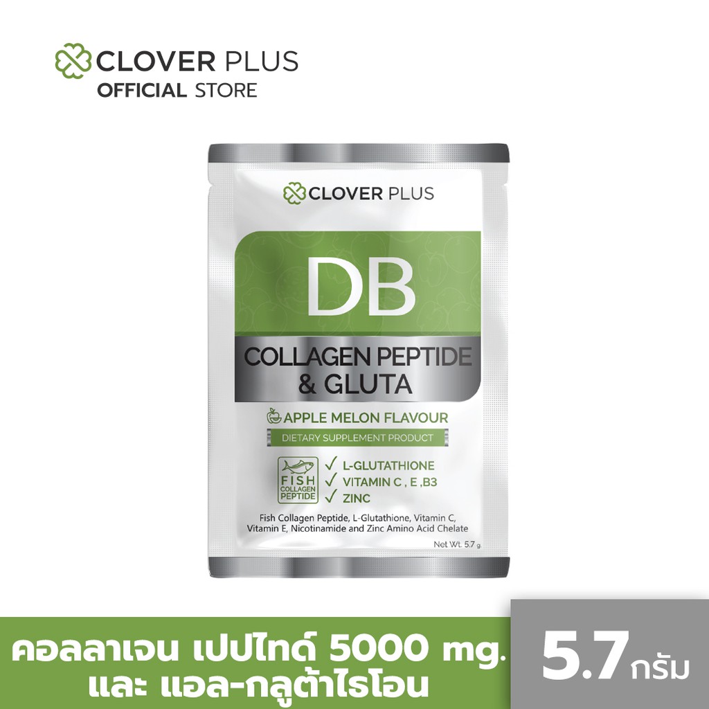 Clover Plus DB COLLAGEN PEPTIDE AND GLUTA Apple Melon Flavour 1 ซอง ( 5.7 g.)