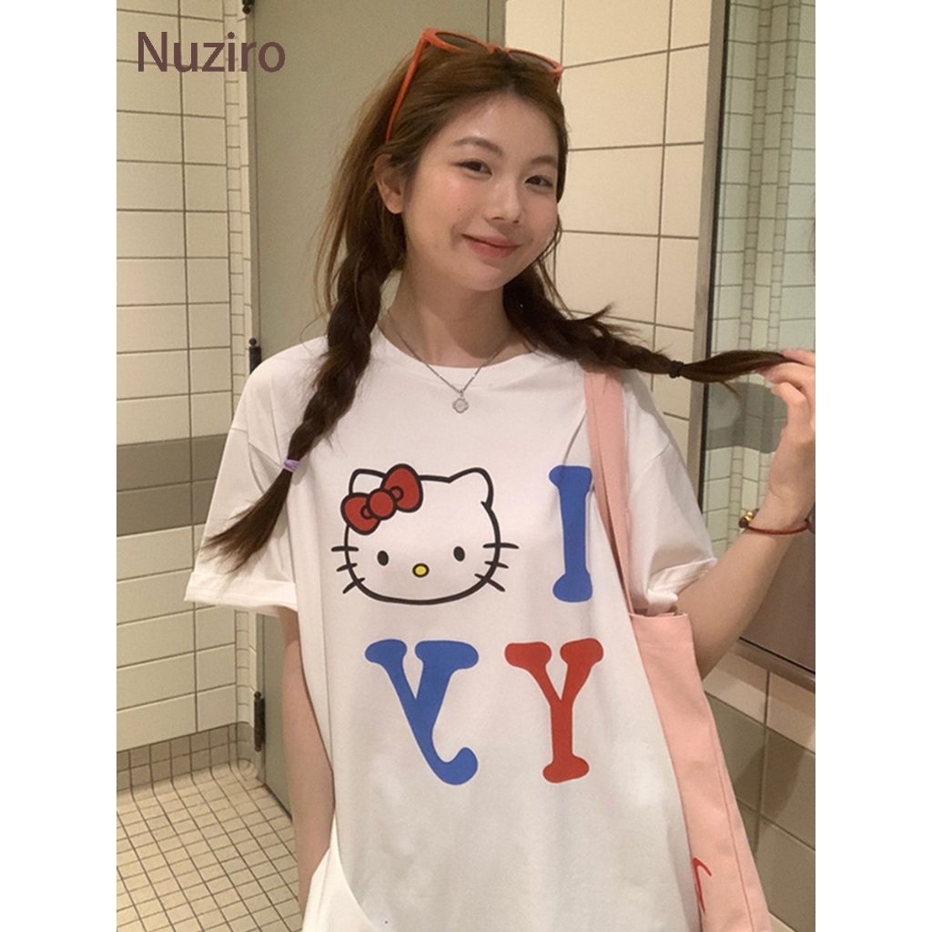 Nuziro เสื้อยืด oversize - การ์ตูนน่ารักแมวตัวอักษรพิมพ์เสื้อยืดแขนสั้นสำหรับผู้หญิง #1771