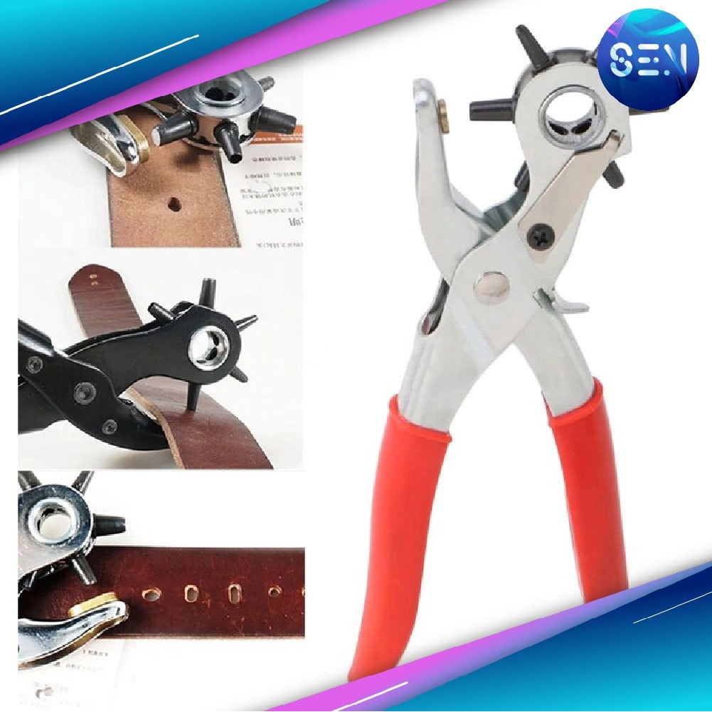 ที่เจาะรูเข็มขัด ด้ามจัมโบ้ มีสปริงทดแรง คม!! เจาะหลุด ภายในครั้งเดียว เจาะรูเข็มขัด เจาะเข็มขัด ปรับได่ 6 ขนาด