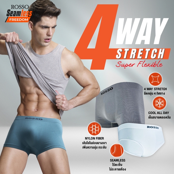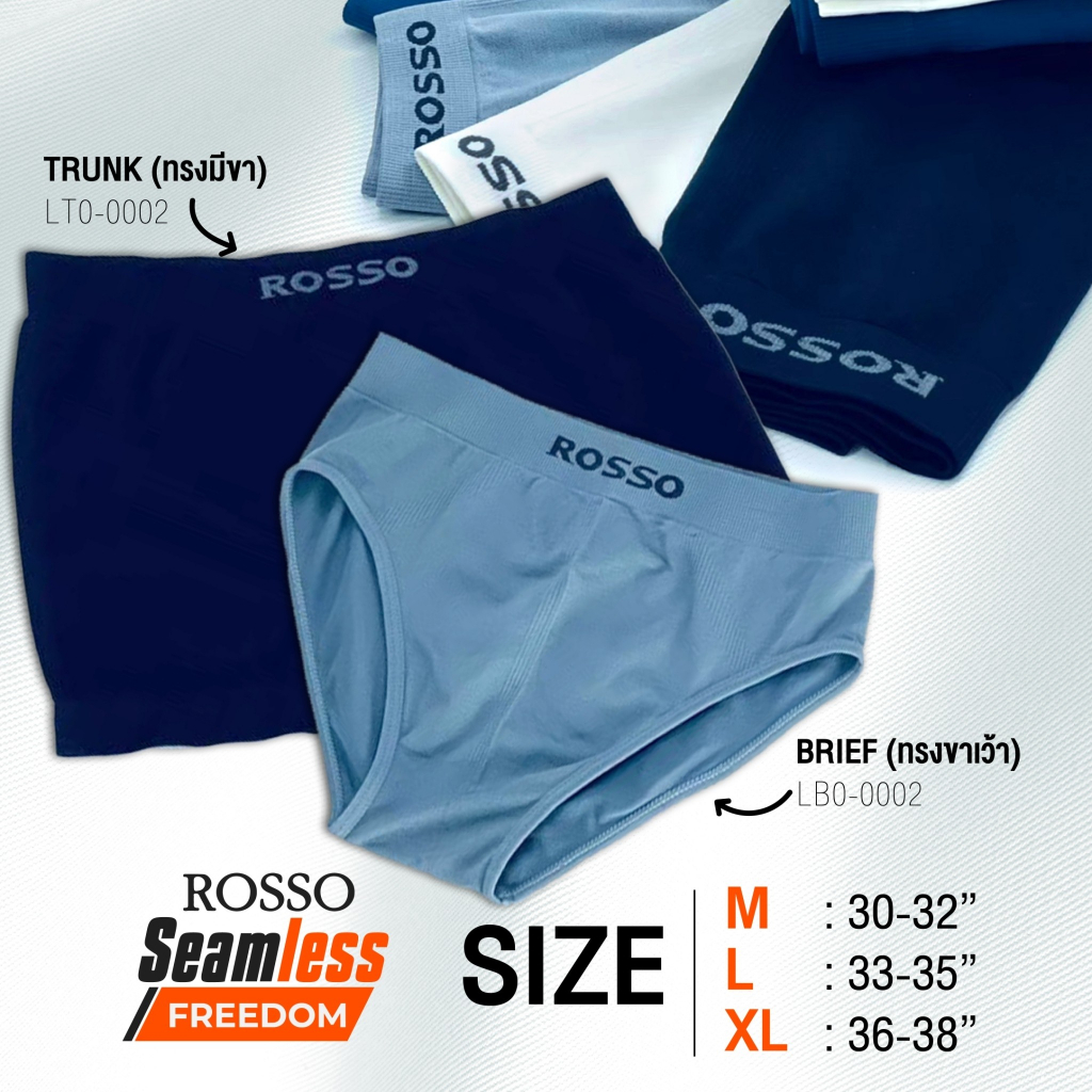 [กดเก็บคูปองส่วนลด ได้ที่หน้าร้าน] รุ่นขายดีที่สุด ! Rosso กางเกงในชาย รุ่น SEAMLESS Freedom ทรงมีขา (Trunk) ไร้ตะเข็บให้ระคายเคือง เย็นสบาย ยืดหยุ่นดี กระชับ (แพ็ก1ตัว และ แพ็ก6ตัว) ✅กางเกงในชายไร้ตะเข็บ ไร้รอยต่อ ✅ทอด้วยเทคโนโลยี 4 Way Stretch ✅ทำให้เนื้อผ้านุ่ม ยืดหยุ่นได้ดี กระชับ แต่