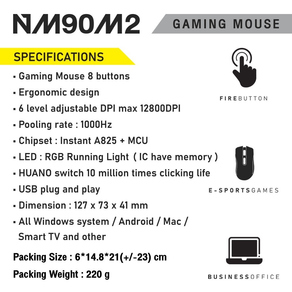 เมาส์เกมมิ่ง Nubwo Gaming Macro Mouse NM-90M , NM-90M2 เมาส์ เมาส์มาโคร ประกันศูนย์ 1ปี เม้าส์ Oberon เมาส์เล่นเกมส์