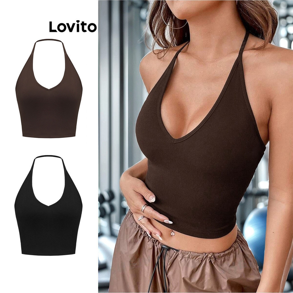 Lovito เสื้อคล้องคอผู้หญิง เบสิก สีพื้น สไตล์ลำลอง L88AD012