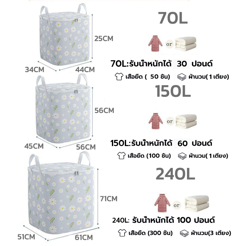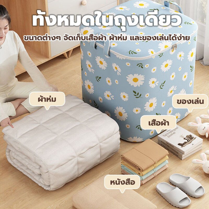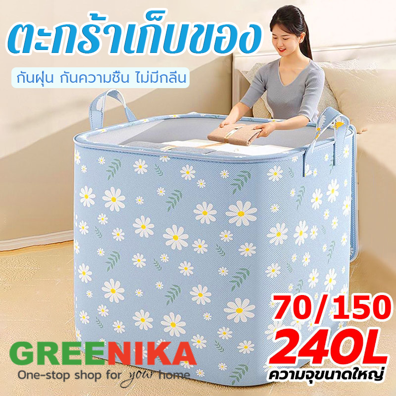 Greenika กระเป๋าใส่ผ้าใหญ่อเนกประสงค์ 240L ถุงเก็บเผ้าห่ม สื้อผ้า ผ้านวม ชุดชั้นใน ผ้าหนา พับได้ มีซิปคู่ กันน้ำและกันฝุ่น