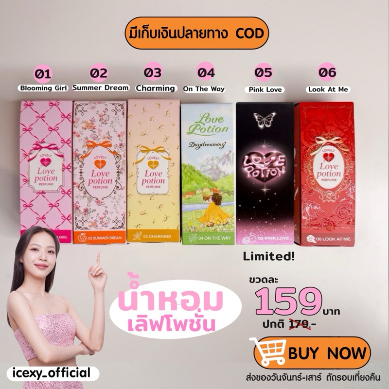 สินค้าใหม่จากแบรนด์เลิฟโพชั่น - 01 ʙʟᴏᴏᴍɪɴɢ ɢɪʀʟ ‘ กลิ่นฟลอรัล น่ารัก สดใส สไตล์คุณหนู ‘ 🧸- 02 ꜱᴜᴍᴍᴇʀ ᴅʀᴇᴀᴍ ‘ กลิ่นฟรุตนี้ หอมหวาน ขี้เล่น มีเสน่ห์ ‘ 🎀- 03 ᴄʜᴀʀᴍɪɴɢ ‘ กลิ่นหอม หรูหรา ดูแพง เซกซี่ ‘ 🍃- 04 ᴏɴ ᴛʜᴇ ᴡᴀʏ : กลิ่นฟลอรัล หอมหวาน สดชื่น ลุคสุภาพ ดูดี ไม่ต้องแต่งตัวเยอะ 🖤 - 𝟬𝟱 𝙋𝙞𝙣𝙠