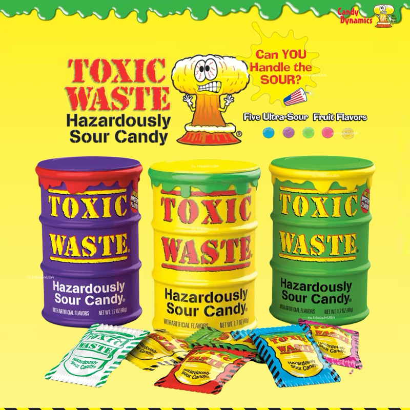 สินค้าพร้อมส่งที่ไทย 📦 ส่งของทุกวัน 7 วันไม่มีวันหยุด!! ตามรอบขนส่งของ Shopee ไม่ต้องรอนาน! 🚀 . ลูกอม TOXIC WASTE™ Hazardously Sour Candy (ท็อกซิกเวสท) ลูกอมรสผลไม้ ASMR หนึ่งในขนมสุดฮิตตตตตต! ตัวฮิตส่งตรงจากอเมริกา 🇺🇸 รสผลไม้ 6 รสชาติ 🍋 สอดไส้ความเปรี้ยว ยิ่งอมเปรี้ยว เปรี้ยวแบบสะใจ รับประกันความ