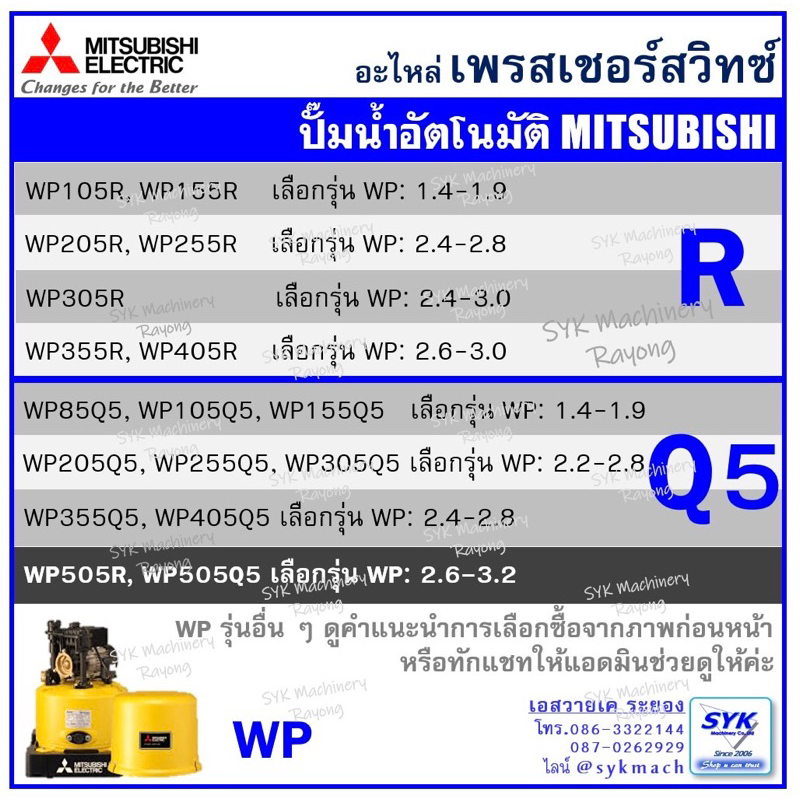 **อะไหล่แท้จากมิตซูบิชิกันยงวัฒนา (ผู้ผลิตปั๊ม) **การเลือกซื้อให้ดูจากค่าแรงดันเป็นหลัก โดยอ่านจากข้างถัง หรือดูจากตารางรุ่นที่ทางร้านจัดทำไว้ให้ตามภาพอธิบายที่ 2 และ 3 (สวิทซ์แต่ละรุ่น จะใช้ได้กับปั๊มน้ำหลายรุ่น ที่หน้ากล่องอะไหล่ทางมิตซูฯจะไม่ได้เขียนรุ่นครอบคลุมไว้ทั้งหมด โปรดอย่าคืนด้วยเหตุผลนี