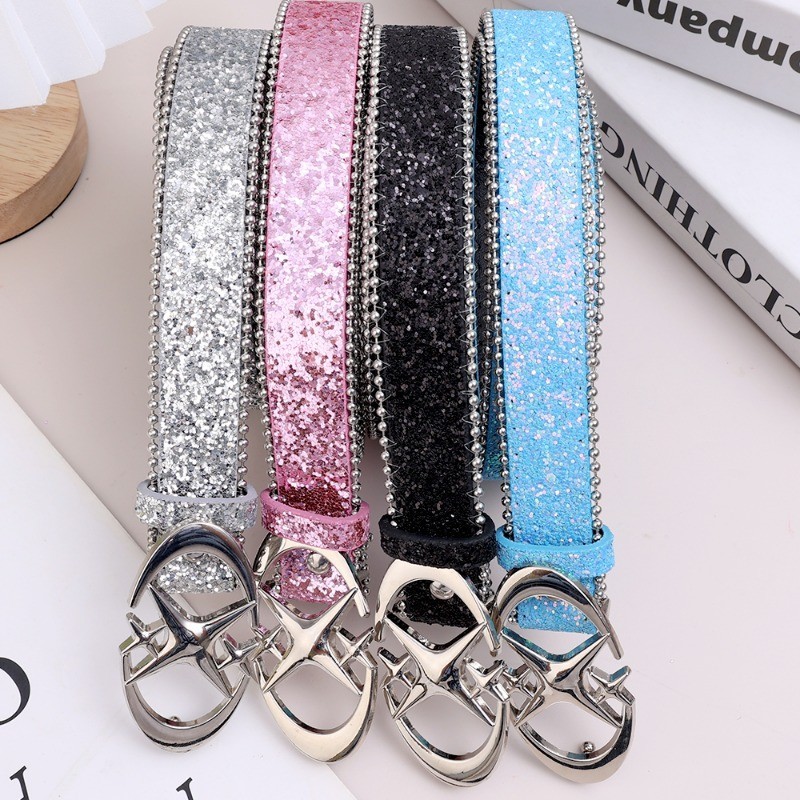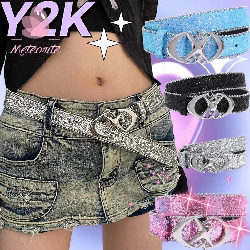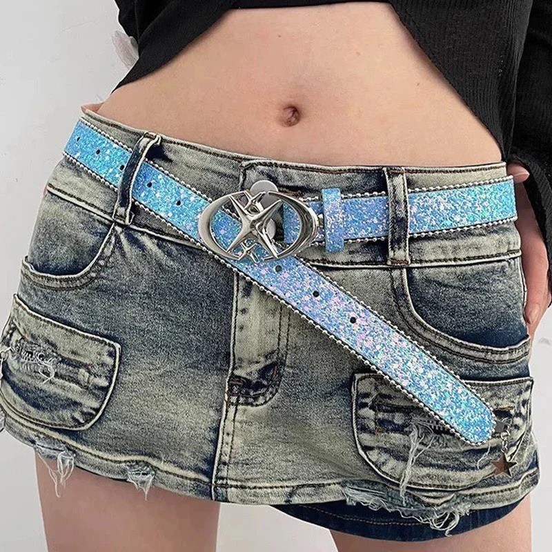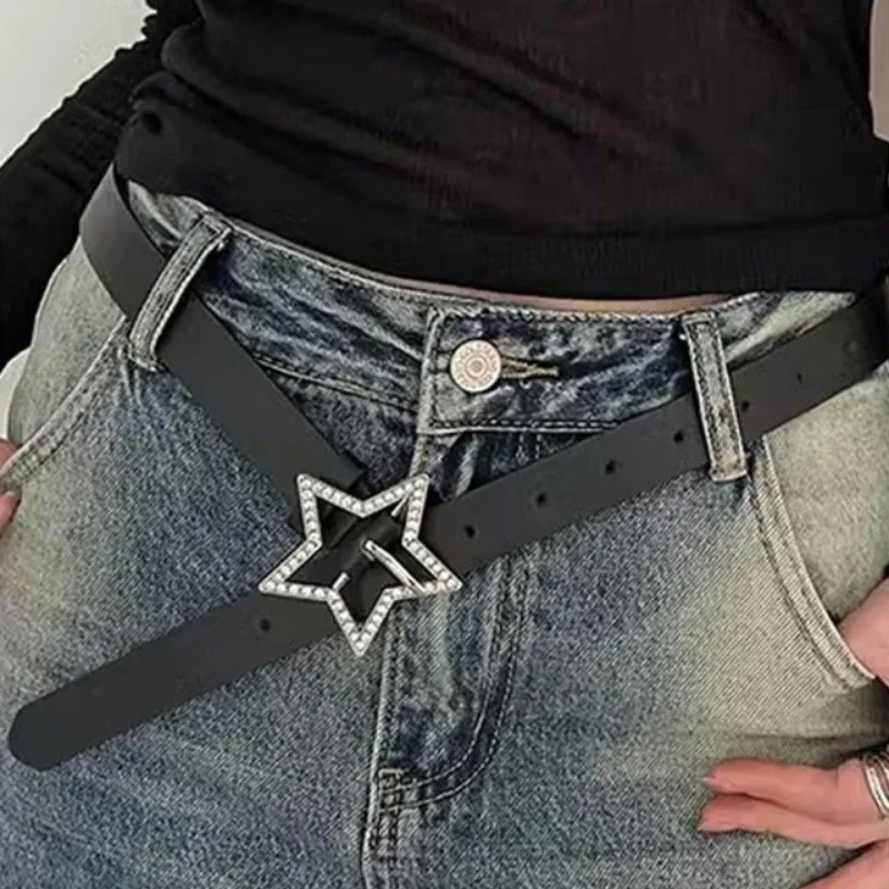 Y2k หนัง PU Rhinestone Star Buckle Belt - Binding Embellished Waistband - Pentagram Retro เจ้าสาวอุปกรณ์ตกแต่ง