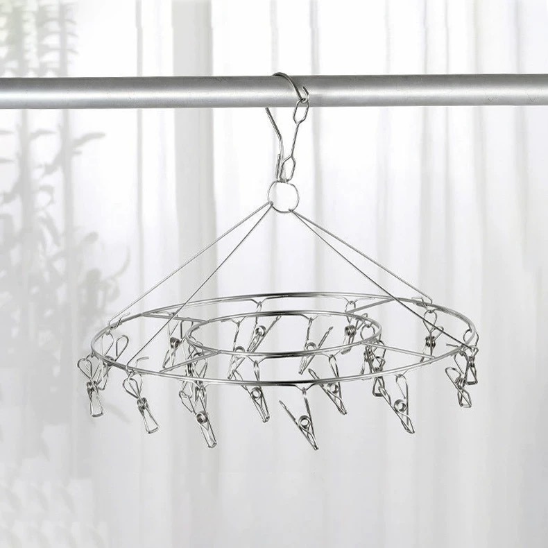 ราวหนีบผ้าสแตนเลส แบบเหลี่ยม-กลม มีตะขอล็อค - มีตะขอล็อคเพื่อกันลม ไม่ให้พัดตกจากราว - สามารถหมุนได้ 360 องศา หมดปัญหาราวจะพันกัน - ทำความสะอาดง่าย สแตนเลสแท้ แข็งแรง ทนทาน ไม่เป็นสนิม - แขวนได้ทั้งผ้าเปียก ผ้าแห้ง ล้างน้ำได้ วัสดุ : สแตนเลส หนา 2 mm. ขนาด : เส้นผ่านศูนย์กลาง 35 ซม.