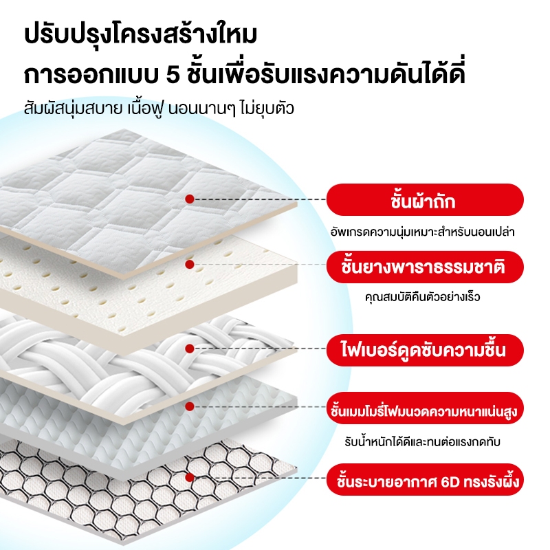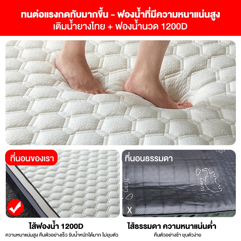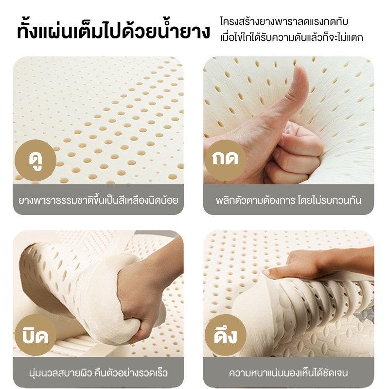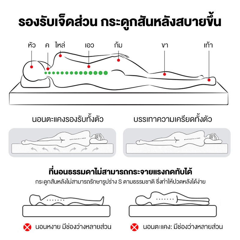 ... อนที่ออกแบบมาเพื่อคุณ คุณภาพดี ราคาจับต้องได้ หลายรุ่น สามารถเลือกให้เหมาะสมกับความต้องการของคุณได้ ▪️ ความหนา : 2-3 นิ้ว(4CM/8CM) 👉ความสูง +-2 cm ขึ้นอยู่กับลอตการผลิต 👈 👉⭐ที่นอนไม่ใช่ที่นอนยางพารา 100% มีส่วนประกอบของยางพารา และมีแผ่นรองภายในที่นอน 5 ชั้น⭐ ที่นอนบรรจุในถุง ครั้งแรกที่คุณเปิดบรรจุภัณฑ์ ที่นอนจะยับเล็กน้อย ซึ่งเป็นเรื่องปกติ รีดพื้นผิวให้เรียบด้วยเตารีด ผลิตภัณฑ์จะสวยงามมาก ⭐(คำชี้แจง: รูปภาพสินค้าใช้เพื่อการอ้างอิงเท่านั้น รายการจริงจะเหนือกว่า)⭐ 👉ที่นอนยางพาราสุดคุ้มค่า ให้สัมผัส แน่น / เด้ง / คืนตัวไว ลดอาการปวดเมื่อย จากที่นอนเดิมที่แข็งเกินไป ลดการเจ็บเอว ปวดหลังได้ดีเยี่ยม รับน้ำหนักสูงสุดได้ถึง 180 กิโลกรัม👈 ▪️ มี 4 ขนาดให้เลือก (3ฟุต,3.5ฟุต, 5 ฟุต, 6 ฟุต, ) 3ฟุต : 200X90X8/4CM 3.5 ฟุต : 200X120X8/4CM 5 ฟุต : 200X150X8/4CM 6 ฟุต : 200x180x8/4CM 📌 คุณสมบัติเบื้องต้น 📌 1) ให้สัมผัส แน่น เด้ง รองรับสรีระได้ดีในทุกอิริยาบถ 2) เนื้อยางพาราอัด แน่น เต็มพื้นที่ พร้อมมอบช่วงเวลาการพักผ่อนที่แสนจะมีค่าให้คุณทุกช่วงเวลา 3) พกพาสะดวก ด้วยน้ำหนักเริ่มต้นเพียง 5 กิโลกรัม คนเดียวก็ยกได้!!! 4) ใช้เป็นเตียงเสริม หรือ ที่นอนหลัก ก็สบาย รองรับน้ำหนักผู้ใช้สูงสุดถึง 180 กิโลกรัม ✨ เหมาะสำหรับฝูงชน ✨ ▪ คนที่มีปัญหาปวดหลังจากที่นอนเก่า อยากได้ที่นอนใหม่ที่รองรับสรีระได้ดี ▪ คนที่เป็นภูมิแพ้ !!!กรุณาตรวจสอบสินค้าก่อนกดเซ็นรับสินค้าหลังจากยืนยันการรับแล้วทางร้านไม่สามารถขอคืนสินค้าหรือคืนเงินให้คุณได้!!!