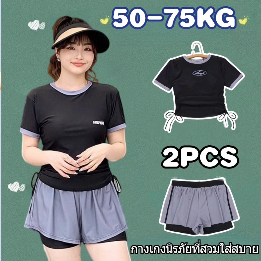💥50-75KG💥ชุดว่ายน้ําสาวอวบ ชุดสาวอวบ ขนาดใหญ่ ทูพีช ผ้าเนื้อดี มีเชือกผูก เป็นยางยืด กันUV กางเกงนิรภัยที่สวมใส่สบาย