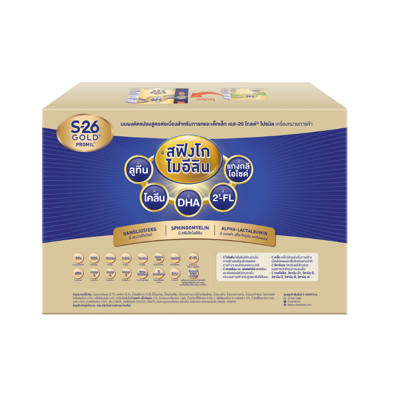 รายละเอียดสินค้า สูตรใหม่ S-26 Gold® Promil™ เอส-26 โกลด์ ® โปรมิล™ เครื่องหมายการค้า นมผงดัดแปลงสูตรต่อเนื่องสำหรับทารกและเด็กเล็ก ช่วงวัยที่ 2 อายุตั้งแต่ 6 เดือน ถึง 3 ปีขนาด 2500 กรัม ส่วนประกอบที่สำคัญ : แลคโตส 36.66%, น้ำมันพืชต่างๆ 19.68% (น้ำมันปาล์ม 6.65 %, น้ำมันถั่วเหลือง 5.02%, น้ำม