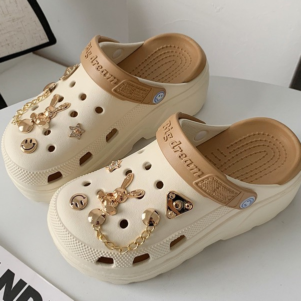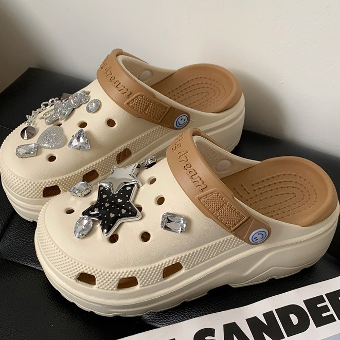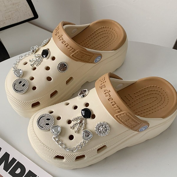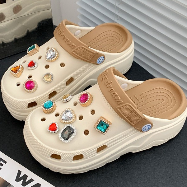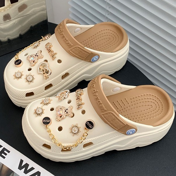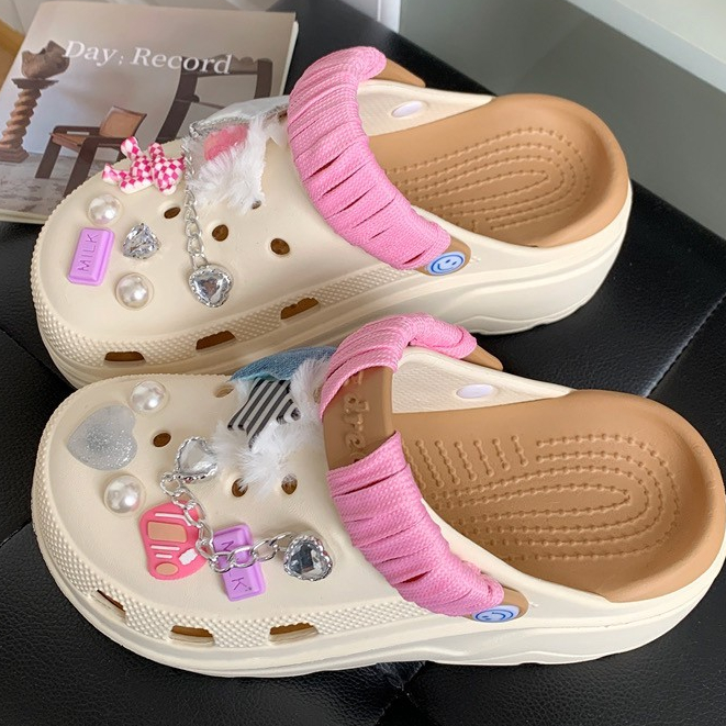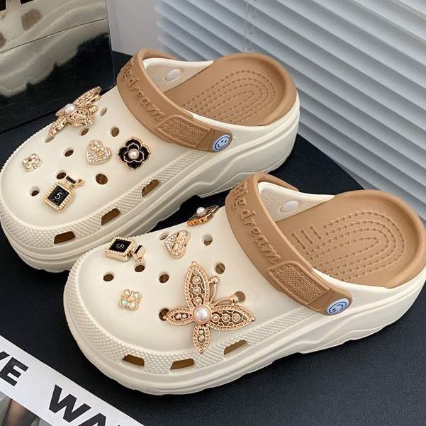 (พร้อมส่ง) รองเท้าหัวโตแถมตัวติด รองเท้าหัวโตผู้หญิง ส้นสูง 5 ซม งานEVA รองเท้าแฟชั่นรัดส้น H-13A-BROWN Ajaygna1991