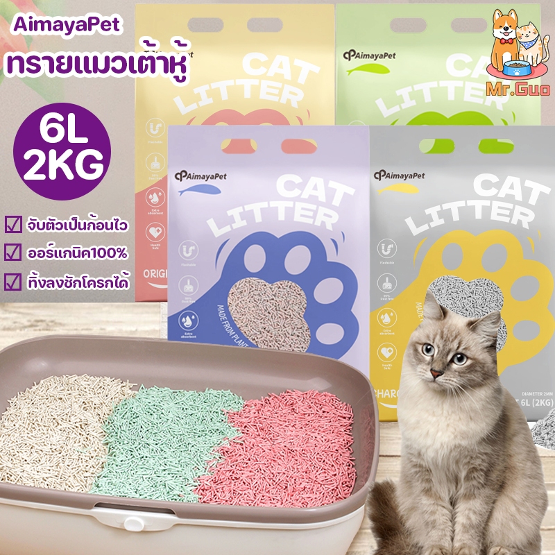 AimayaPet🐱ทรายแมวเต้าหู้ 6L ทรายแมว ออร์แกนิค100% Cat Litter เก็บกลิ่น จับตัวเป็นก้อนไว ทิ้งชักโครกได้