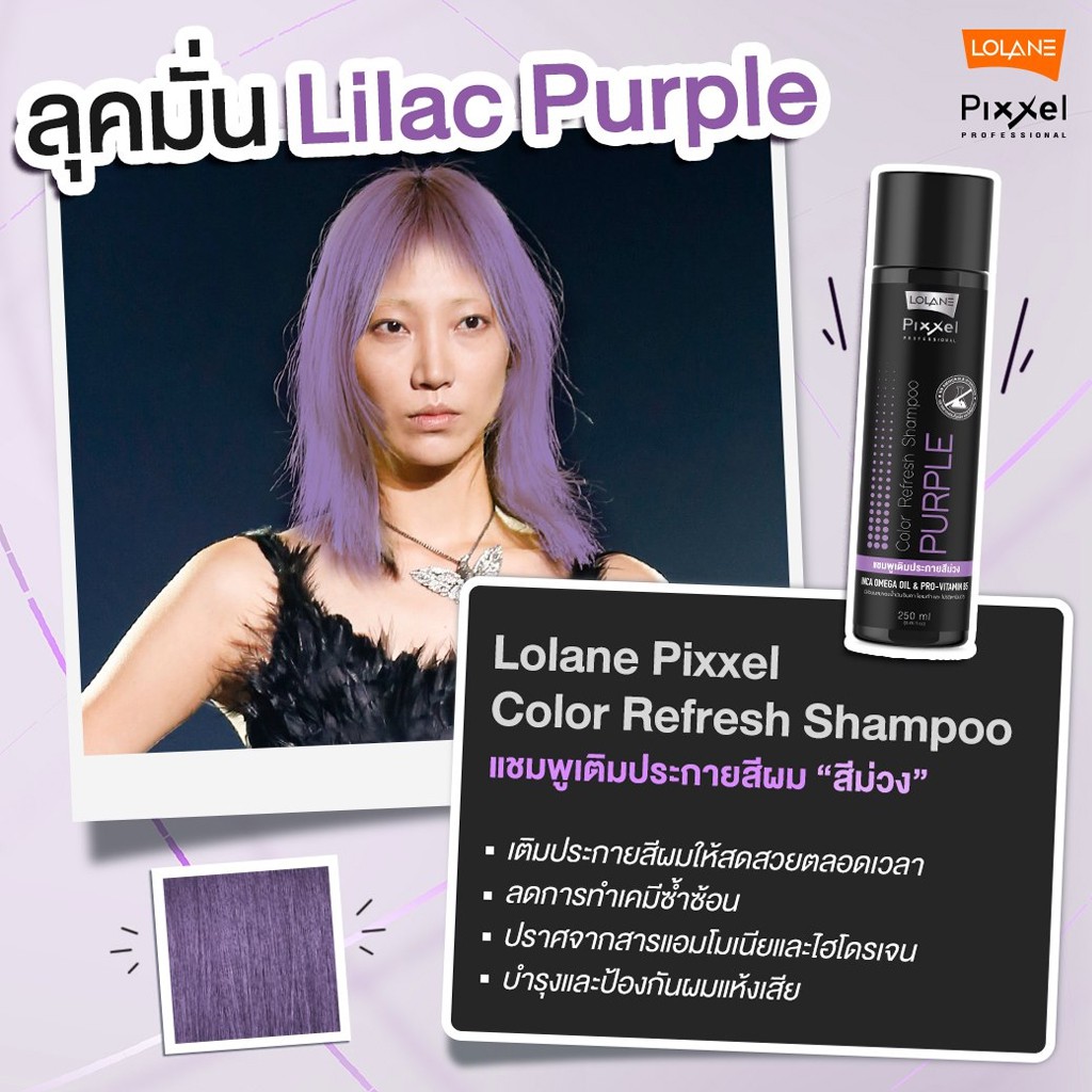 ... xel Anti Yellow Shampoo ⭐️ แชมพูฆ่าไรเหลือง โลแลน พิกเซล แอนตี้ เยลโล่ ช่วยลดเม็ดสีเหลืองในเส้นผม เพื่อเตรียมทำสีโทนหม่น พร้อมบำรุงผมด้วย Provitamin B5 และคุณค่าจาก Inca Omega Oil ช่วยบำรุงและป้องกันเส้นผมแห้งเสียนุ่มสลวยเป็นเงางาม • NO AMMONIA • NO HYDROGEN 🍂วิธีใช้ : ใช้หลังฟอกผมหรือก่อนทำสีผม สวมถุงมือ ชโลมแชมพูลงบนผมเปียก สระนวดจนเป็นฟอง ให้ทั่วเส้นผม ทิ้งไว้ 3-5 นาที (การทิ้งระยะเวลาขึ้นอยู่กับปริมาณเม็ดสีเหลืองที่อยู่ในเส้นผม) สังเกตประกายเหลืองลดลง ล้างออกด้วยน้ำสะอาด แล้วทำสีผมใหม่ตามต้องการ *สีผมที่ได้ ขึ้นอยู่กับระดับพื้นผมเริ่มต้น และระยะเวลาที่ทิ้งไว้ มีให้เลือก 2 ปริมาณ : 100 / 250 มิลลิลิตร ---------------------------------------------------- แชมพูเขียว💚 ฆ่าไรแดง ❤️ Lolane Pixxel Anti-Red Shampoo แชมพูช่วยลดเม็ดสีแดงบนเส้นผม ใช้งานง่ายเพียงแค่สระ ลดการฟอกซ้ำและช่วยปรับพื้นสีผมสำหรับทำสีโทนแฟชั่น หรือเติมสีผมในกลุ่มบลอนด์ประกายเขียว ✨ พร้อมส่วนผสมโปรวิตามิน B5 ✨ น้ำมันอินคา โอเมก้า ช่วยบำรุงและป้องกันผมแห้งเสีย ให้ผมนุ่มสลวยเป็นประกายเงางาม ❌ ปราศจากแอมโมเนียและไฮโดรเจน 🍃วิธีใช้ : ชโลมแชมพูลงบนผมที่เปียก สวมถุงมือแล้วสระนวดจนเป็นฟองให้ทั่วเส้นผม ทิ้งไว้ 5-10 นาที จึงล้างออกด้วยน้ำสะอาด *สีผมที่ได้ ขึ้นอยู่กับระดับพื้นผมเริ่มต้น และระยะเวลาที่ทิ้งไว้ มีให้เลือก 2 ปริมาณ : 100 / 250 มิลลิลิตร ---------------------------------------------------- โลแลน พิกเซล คัลเลอร์ รีเฟรช แชมพู Lolane Pixxel Color Refresh Shampoo **ต่างจาก มอยส์เจอไรซิ่ง แชมพู** ✅ มีฟองเยอะ ✅ ปราศจากแอมโมเนียและไฮโดรเจน แชมพูเติมประกายสี เพิ่มประกายสีผมให้สวยตลอดเวลาสำหรับผู้ที่ทำสี แล้วสีซีดจางสำหรับผู้ที่มีผมฟอกสว่างระดับ 10 ขึ้นไป โดยไม่ต้องย้อมสีใหม่ ลดการทำเคมีซ้ำ เพียงแค่สระแล้วล้างออก พร้อมด้วย Provitamin B5 และคุณค่าจากInca Omega Oil ช่วยบำรุงและป้องกันผมแห้งเสียนุ่มสลวยเป็นเงางาม มีให้เลือกทั้งหมด 12 เฉดสี • Ash สีเทา • Putple สีม่วง • Blue สีฟ้า • Pink สีชมพู • Orange สีส้ม • Peach สีพีช • Neon Green สีเขียวนีออน • Milk Tea สีชานม • Summer Red สีแดง • Dolly Pink สีชมพู • Natural Brown สีน้ำตาล • Ash Purple สีเทาเข้ม 🍃วิธีใช้ : ชโลมแชมพูลงบนผมที่เปียก สวมถุงมือแล้วสระนวดจนเป็นฟองให้ทั่วเส้นผม ทิ้งไว้ 5-10 นาที จึงล้างออกด้วยน้ำสะอาด *สีผมที่ได้ ขึ้นอยู่กับระดับพื้นผมเริ่มต้น และระยะเวลาที่ทิ้งไว้ มีให้เลือก 2 ปริมาณ : 100 / 250 มิลลิลิตร ---------------------------------------------------- โลแลน พิกเซล คัลเลอร์ รีเฟรช มอยส์เจอไรซิ่ง แชมพู Lolane Pixxel Color Refresh Moisturizing Shampoo ให้ผลลัพธ์ผมนุ่มลื่นขึ้นกว่าเดิม หลังทำผมไม่ฝืด ไม่ติดม่วง และปราศจากสารแอมโมเนีย ไฮโดรเจน พาราเบน ซัลเฟส และซิลิโคน ✅ ฟองน้อย เนื้อข้น ✅ กึ่งแชมพู