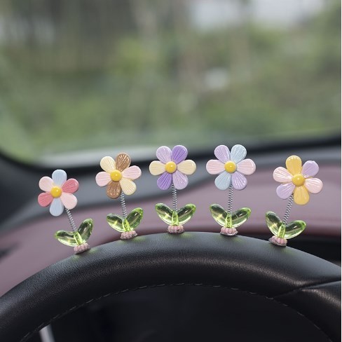 5ชิ้นสายรุ้งดอกไม้เขย่าหัวเครื่องประดับ-เครื่องประดับตลก-อุปกรณ์รถยนต์-ภายในรถกระจกมองหลังตกแต่ง-ทําเอง ตกแต่งอัตโนมัติ-ดอกไม้สดฤดูใบไม้ผลิแกว่งของเ