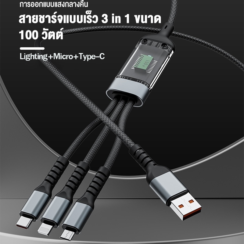 สายชาร์จเร็ว 3in1 Micro USB Type-C 100W 6A