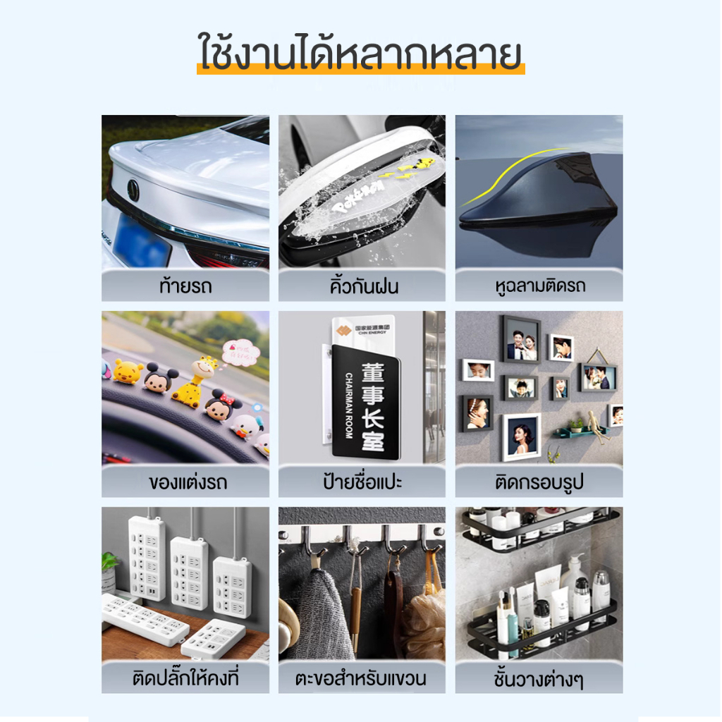 ... าะและแรงเฉือนที่มีประสิทธิภาพสูงมีความแข็งแรงภายในสูง - มีควาเหนียวแน่นที่ดีทั้งแผ่นและมีคุณสมบัติยืดหยุ่น ทนทานดีเยี่ยม 【การใช้งาน】 - 3Mเทปกาวสองหน้าเนื้อกาวอะครีลิค แรงยึดติดสูงพิเศษ ติดได้ทั้งรถยนต์และตั้งแต่โลหะไปจนถึงสแตนเลส ABS - และ PVC แผงโยก แม่พิมพ์ขอบล้อ, ขอบประตู, แผ่นป้าย / เครื่องประดับ,/วัสดุไม้ รวมไปถึงผนังห้องต่างๆ - ชั้นวางกระเป๋า แผ่นหลังคารถ และแผ่นคอนโซลหน้ารถ - ช่วยให้ท่านติดวัสดุสองชนิดเข้าด้วยกันด้วยแรงยึดติดสูงจากการยึดติดแบบชั่วคราวไปจนถึงการยึดติดถาวร * การใช้งานทั่วไป * ได้แก่ คิวรถยนต์และการตกแต่งรถยนต์/ด้านข้างตัวรถ สแตนเลส ABS และ PVC แผงโยก แม่พิมพ์ขอบล้อ, ขอบประตู, แผ่นป้าย / เครื่องประดับ, ชั้นวางกระเป๋ากันลมและฝน และแผ่นปิดแผงหน้าปัด