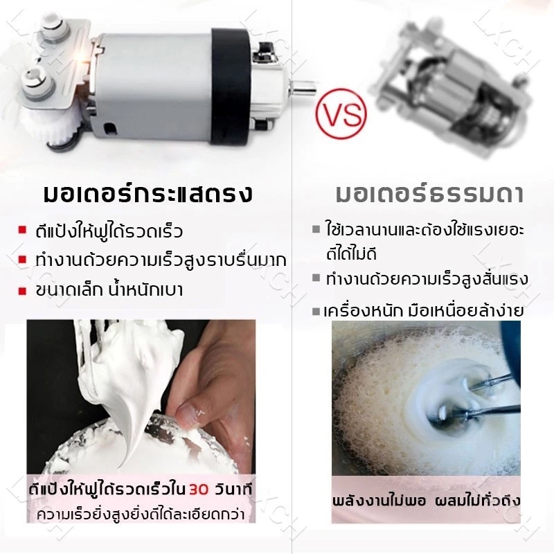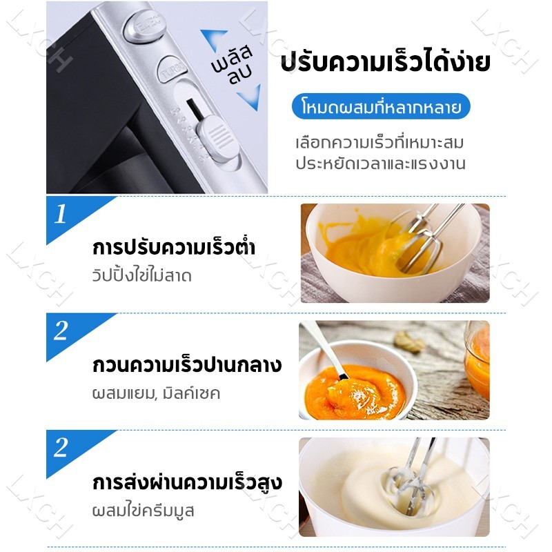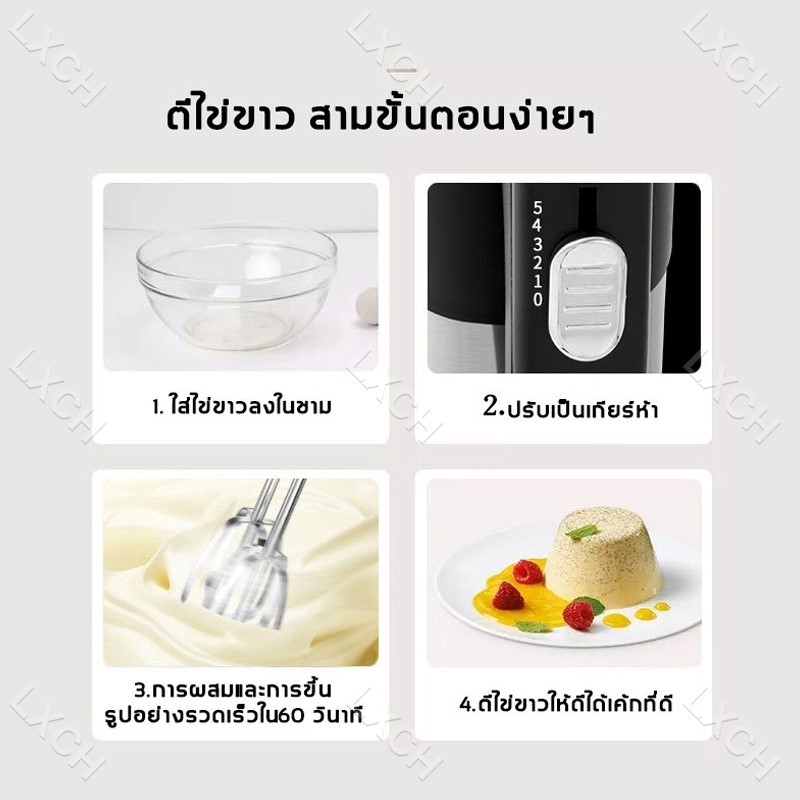 ... งานได้ยาวนาน ปลอดภัย มั่นใจได้เลยค่ะ ^^ • ทำไมต้องเลือกซื้อเครื่องตีไข่ SOKANY รุ่นใหม่! ปี 2024 • 1. พัฒนามอเตอร์รูปแบบใหม่ ที่มีกำลังการทำงานสูงกว่ารุ่นเก่า ทำให้ใช้งานตัวเครื่องในงานหนักๆได้ดี รวมทั้งยังรองรับการใช้งานกับแป้งที่มีความหนืดสูงได้อย่างยอดเยี่ยม ยังช่วยยืดอายุการใช้งานของตัวเครื่องให้ยาวนานกว่ารุ่นเก่า • 2.รอบการหมุนที่มากและเร็วกว่าเดิม ทำให้ตีส่วนผสมต่างๆให้ขึ้นฟูได้อย่างรวดเร็วและง่ายดาย เช่น ไข่ขาว วิปครีม ฯลฯ • 3. มีไฟแสดงสถานการณ์ใช้งาน ใช้งานได้อย่างสะดวกกว่าเก่าพร้อมการออกแบบสรีระของตัวเครื่องให้ง่ายต่อการจับถือ • จุดเด่นของสินค้า • 1.กำลังไฟสูงถึง 800 วัตถ์(กำลังไฟสูงพิเศษเพื่อเพิ่มกำลังการตี) สามารถใช้กับงานหนักได้ดี และเพิ่มความเข้ากันได้ดีของส่วนผสมทำให้ขนมที่ทำออกมาเนื้อสัมผัสที่เนียนอร่อย การตีวิปจะขึ้นฟูเร็วกว่าปกติเนื้อเนียนสวย และตีแป้งที่หนืดสูงได้ด้วยค่า ที่สำคัญรุ่นนี้จะใช้งานได้ทนทาน ยาวนานกว่ารุ่นทั่วไปที่มีจำหน่ายในท้องตลาดเป็นพิเศษ โดย อุปกรณ์ประกอบด้วย เครื่องตีไข่ 1 เครื่อง หัวตีตะขอ 1 คู่ หัวตีใบพัด 1 คู่ • 2. ปรับความเร็วได้ถึง 5 ระดับ • 3. ปุ่มถอดหัวตี สะดวกต่อการใช้งาน • 4. ระบบลมร้อน ช่วยยืดอายุการใช้งานของตัวเครื่อง • พร้อมอุปกรณ์ หัวตีถึง 2 แบบ ได้แก่ • 1) หัวตีแบบตะขอ (Dough Hook) ใช้สำหรับนวดแป้งให้เป็นก้อนโดว์ ในขั้นตอนการทำขนมปัง โดยที่หัวตีแบบตะขอจะทำการม้วนดึงก้อนแป้งให้เข้ากัน และช่วยให้โปรตีนกับน้ำรวมตัวกัน จนเกิดเป็นกลูเต็น มีลักษณะเหนียว ยืดหยุ่น สามารถปั้นเป็นรูปร่างต่างๆได้ • 2) หัวตีอเนกประสงค์ หรือหัวตีแบบใบไม้ (Paddle) ใช้ตีน้ำตาลกับเนยให้ขึ้นฟูสำหรับทำเค้กหรือคุกกี้ หรือตีแป้ง น้ำตาล ของเหลว และไข่แดงในการทำชิฟฟ่อนเค้ก • มอเตอร์ทองแดง ทนความร้อน ใช้งาน5นาที พักเครื่อง 1นาที จะยืดอายุการใช้งานได้นานขึ้น • มีรับประกันสินค้า 1 ปี ศูนย์ไทย พร้อมบริการหลังการขาย • กรณีสินค้าชำรุด เคลมสินค้าใหม่ได้ใน 15 วัน • ข้อมูลผลิตภัณฑ์ • ผลิตภัณฑ์: เครื่องผสมอาหารแบบมือถือ (Hand mixer) • รุ่น: 800 วัตถ์-1500 วัตถ์ • แรงดันไฟฟ้า: 220V-50Hz • ปรับความเร็ว: 5 ระดับ(0-5) • น้ำหนัก: 0.9 kg เนื่องจากเป็นการอัพเกรดใหม่บรรจุภัณฑ์ด้านนอกยังไม่ได้รับการต่ออายุโปรดดูผลที่แท้จริง⚡️ ✅ผู้ขาย✔ในพื้นที่การจัดส่ง✔ที่มั่นคงราคา✔ที่เหมาะสมรับประกันคุณภาพ ✔ ✅[เก็บเงินปลายทาง] โปรดรับสินค้าทีละน้อยเมื่อคุณมาถึง ✅【การเลือกผลิตภัณฑ์】หากคุณมีคําถามใด ๆ เกี่ยวกับการเลือกผลิตภัณฑ์โปรดติดต่อฝ่ายบริการลูกค้า ฝ