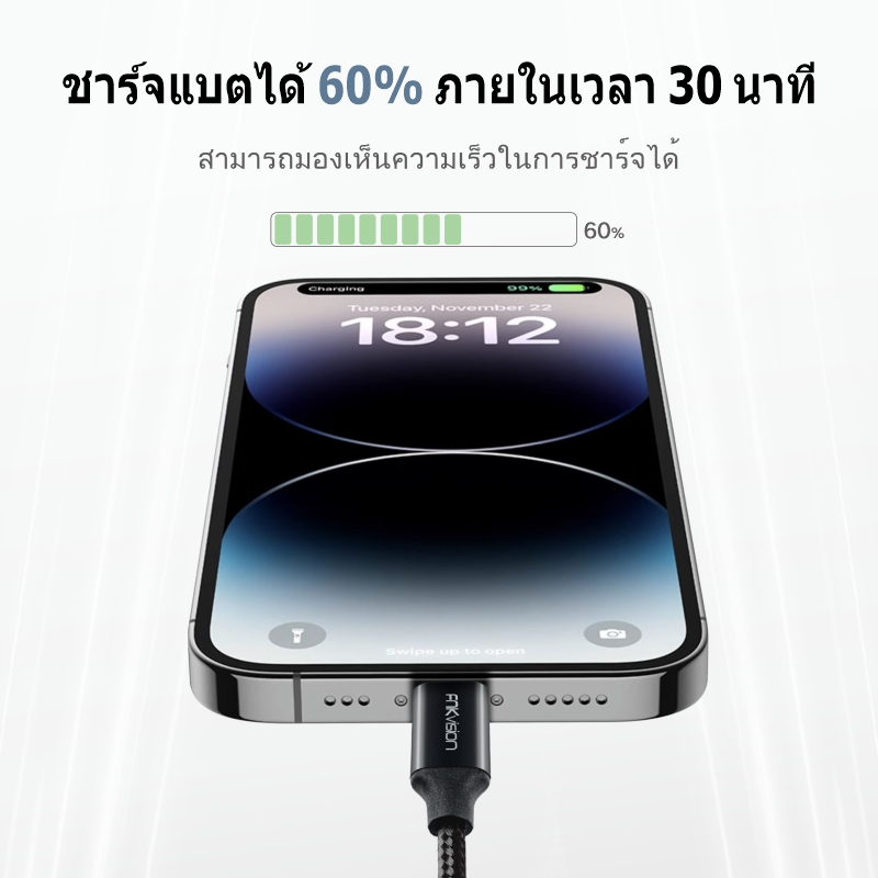 FNKvision สายเคเบิลชาร์จเร็ว 27w PD USB c เป็น L Type c สําหรับ L 7- IP14 Pro max 30w
