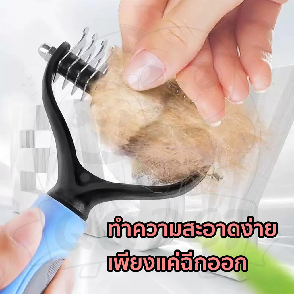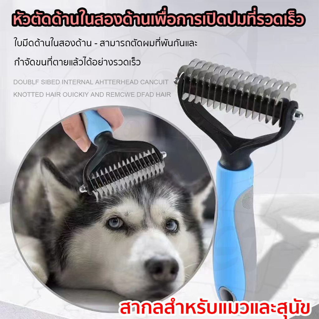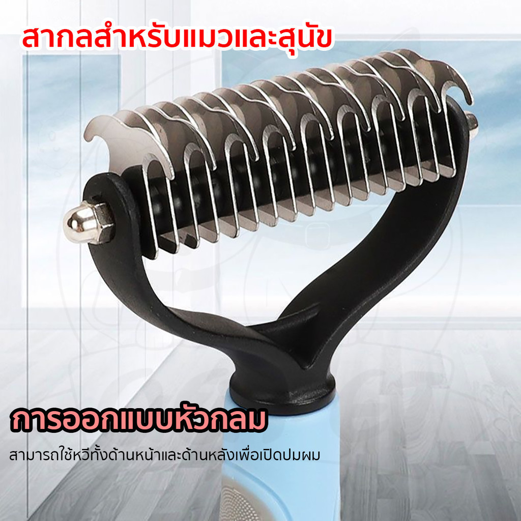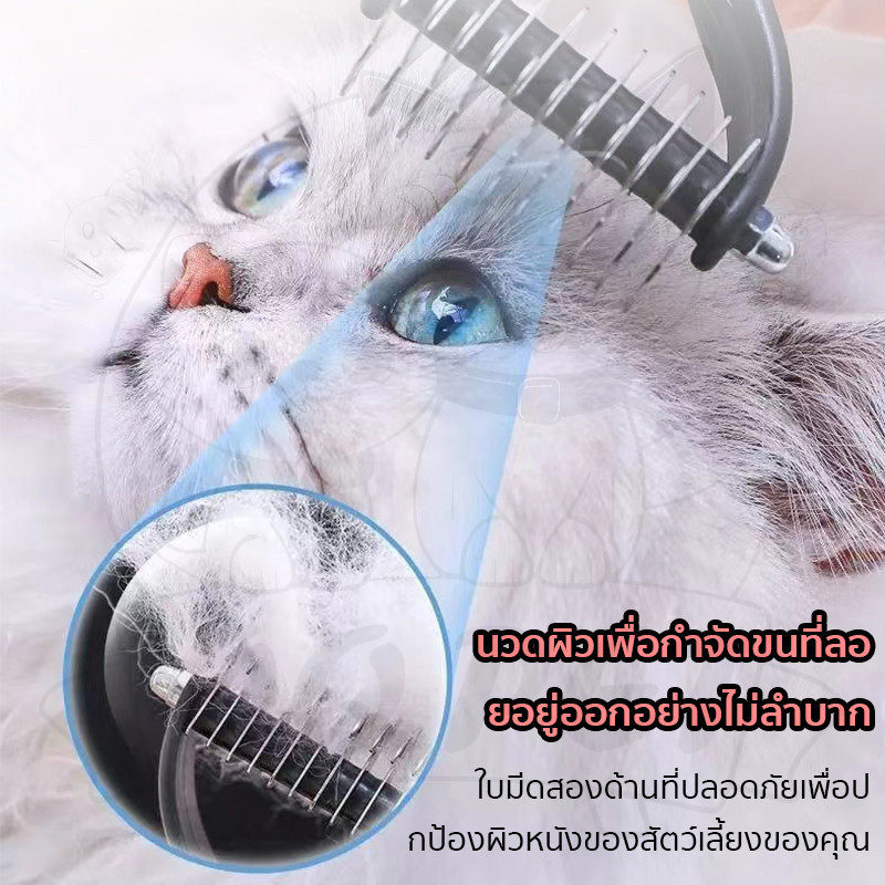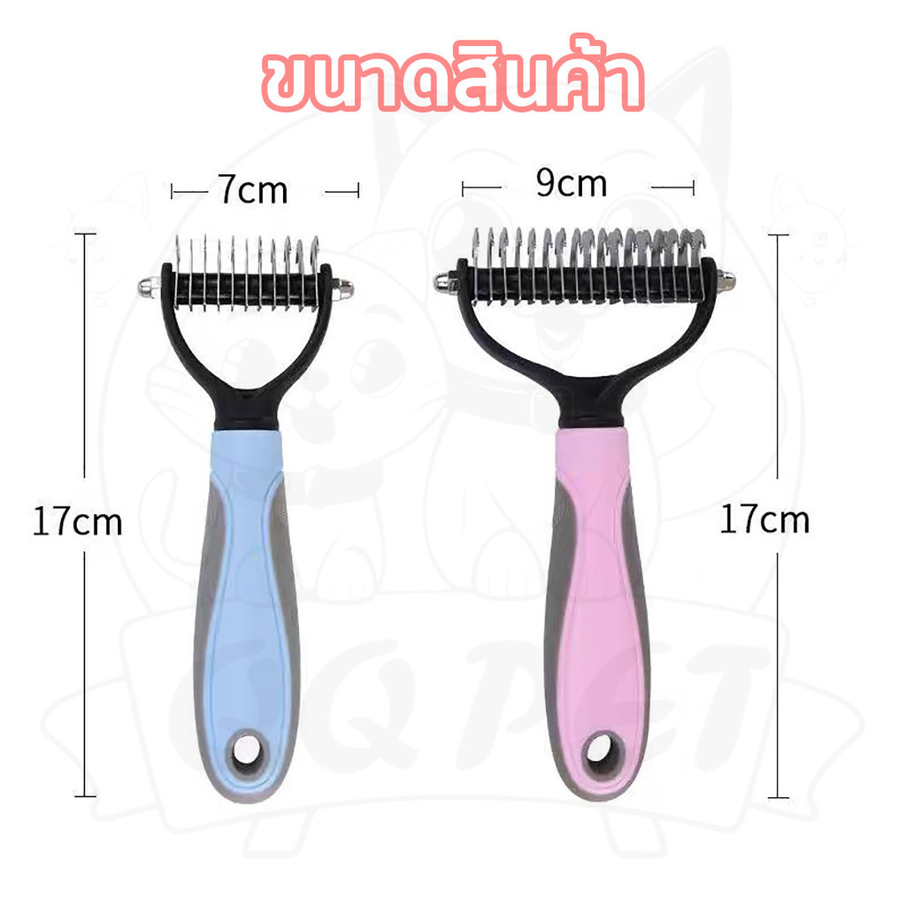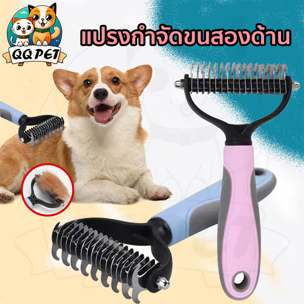 QQPET แปรงกําจัดขนสองด้าน แปรงขนสุนัข หวีแมว สางขนเสีย มีซี่เป็นเแตนเลส ใช้ทั้งสุนัขและแมว