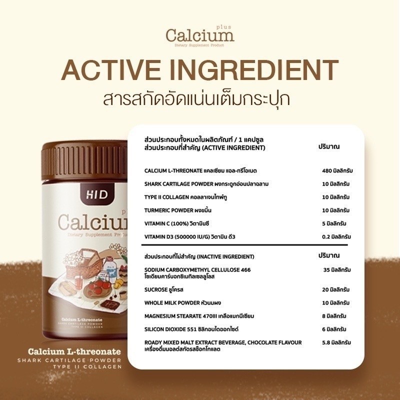 ... มแคลเซียม แบบเคี้ยว ️ ช่วยเสริมสร้างกระดูก ️ ป้องกันกระดูกเสื่อมสภาพก่อนวัยอันควร ️ บรรเทาอาการปวดข้อ เข่า ️ บำรุงผิวพรรณ กระตุ้นการสร้างคอลลาเจน ️ เสริมภูมิคุ้มกันให้ร่างกายแข็งแรง ️ รสโกโก้ อร่อย เคี้ยวง่าย ทานง่าย ปริมาณบรรจุ : 30 เม็ด เลขที่ อย. : 70-1-18565-5-0267 โปรโมชั่น ซื้อ 1 กระปุก ราคา 199.- ซื้อ 2 กระปุก ราคา 350.- ซื้อ 3 กระปุก ราคา 500.- ซื้อ 5 กระปุก ราคา 750.-