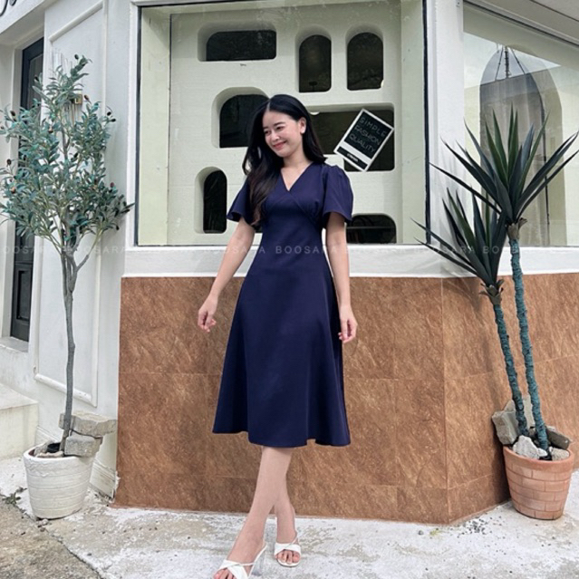 Timmy Dress 🐰👗 เดรสคอวีแต่งจีบช่วงอก ทรงสวยใส่ออกงาน ทำงานได้ - BSR C.
