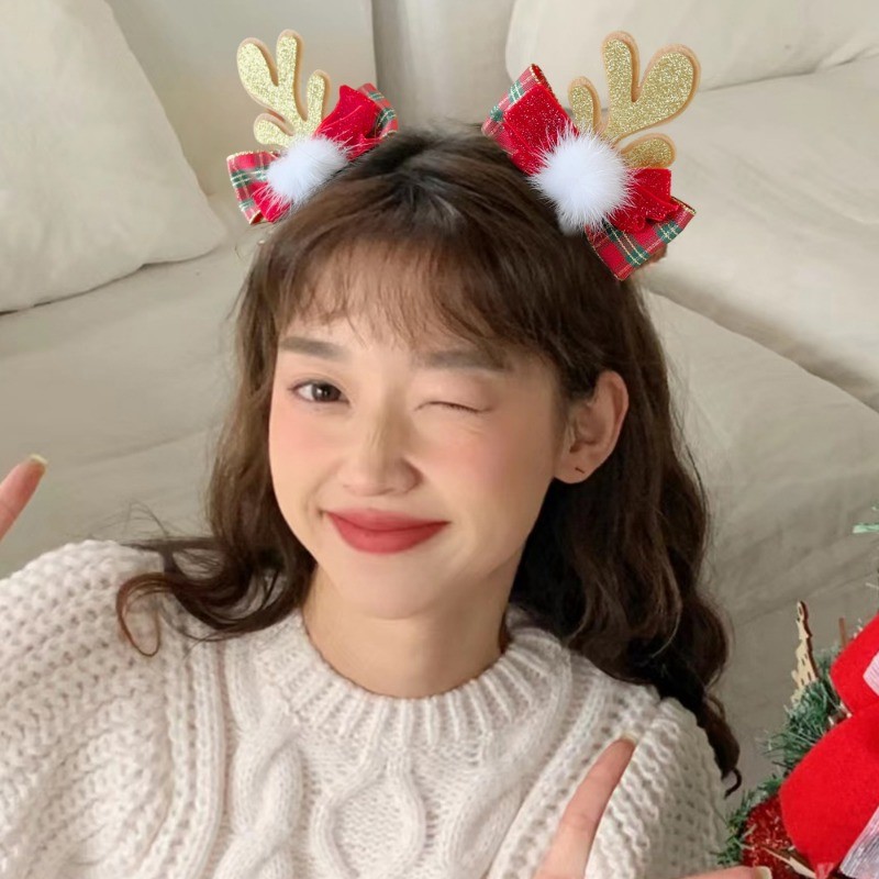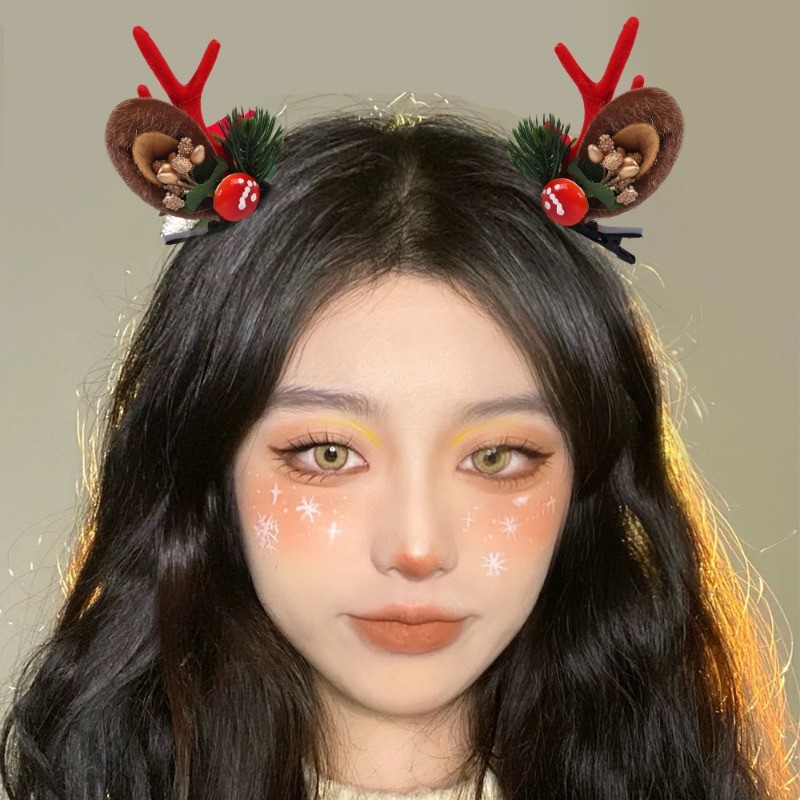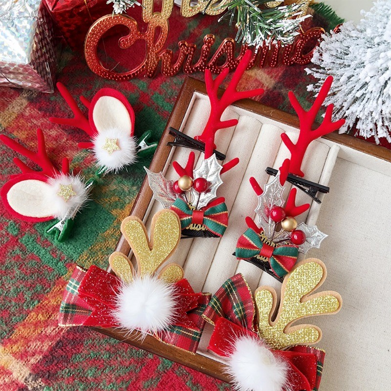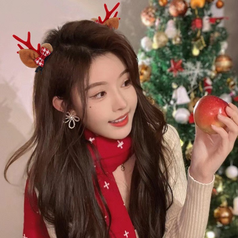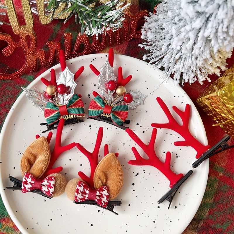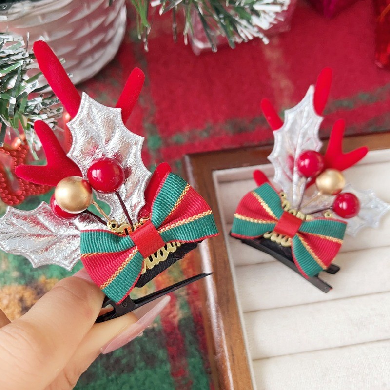 2 ชิ้นคริสต์มาสเขากวาง Hairpins - Santa Claus Headwear - Mini Elk หู Bells กิ๊บติดผม - ปีใหม่ Barrette - เครื่องประดับผมปาร์ตี้คริสต์มาส - หวาน น่ารัก - หมวกมินิสีแดงกิ๊บติดผม