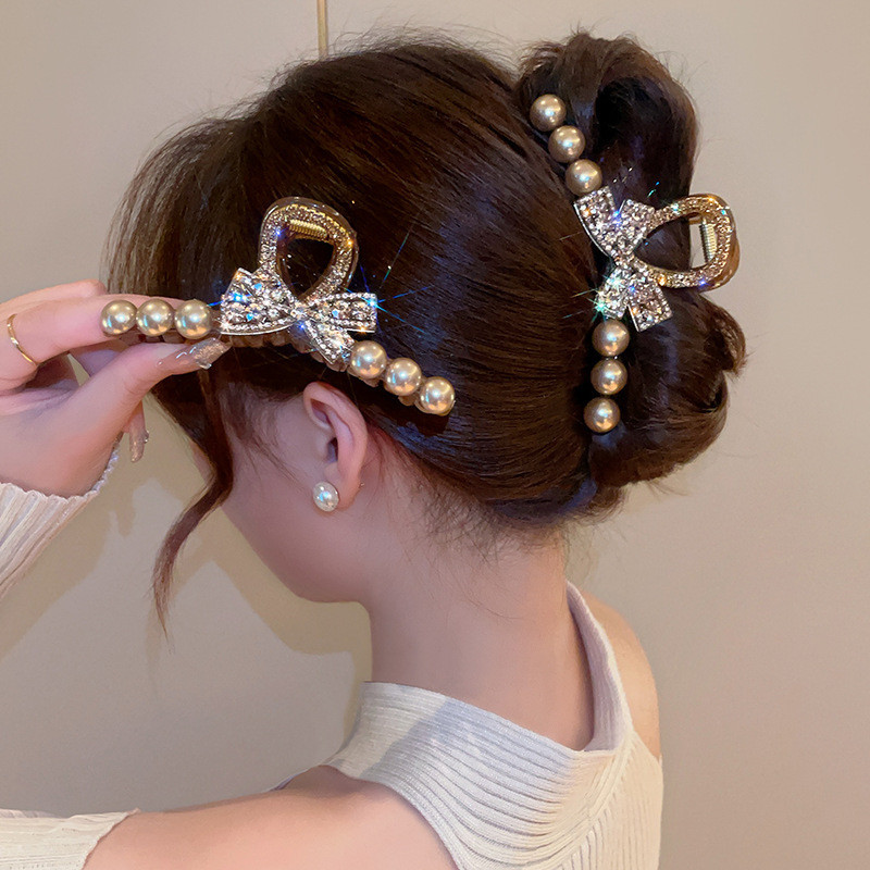 2024 Rhinestone Pearl Bow Grab คลิปหญิงคลิปผมขนาดใหญ ่ คลิปฉลาม