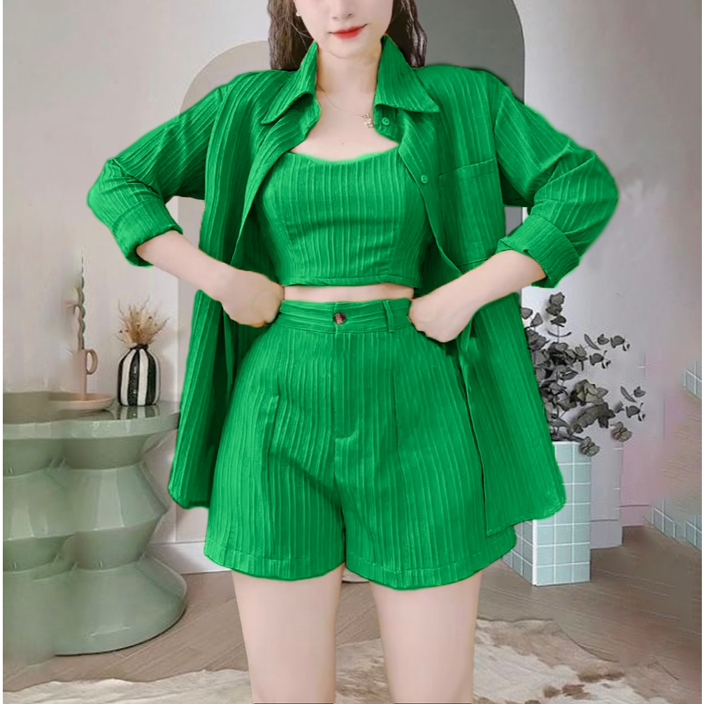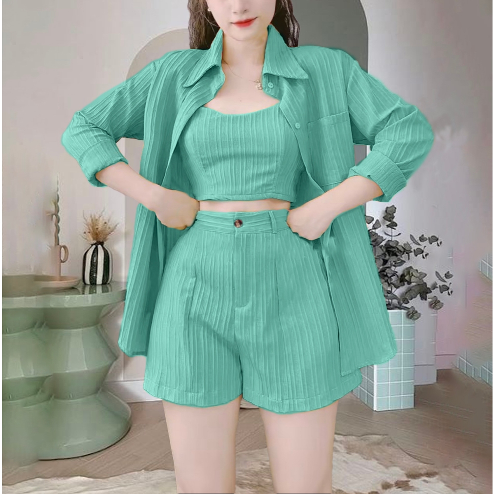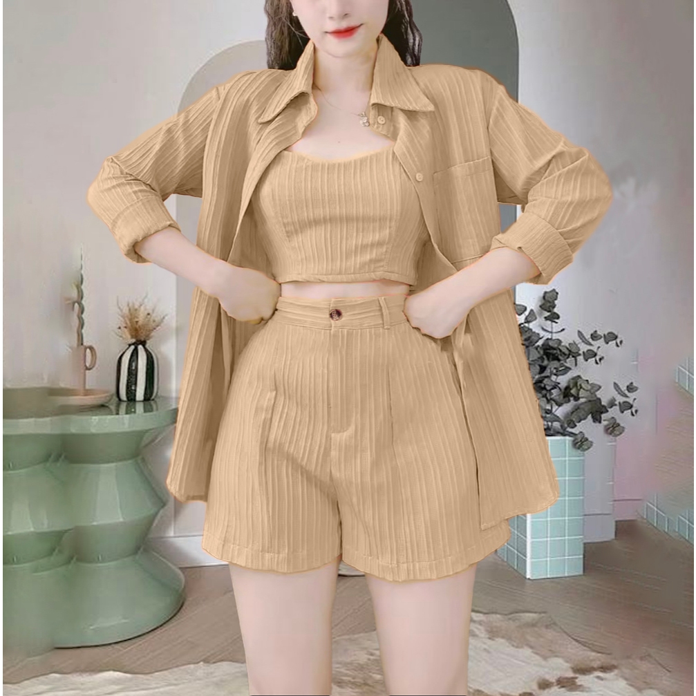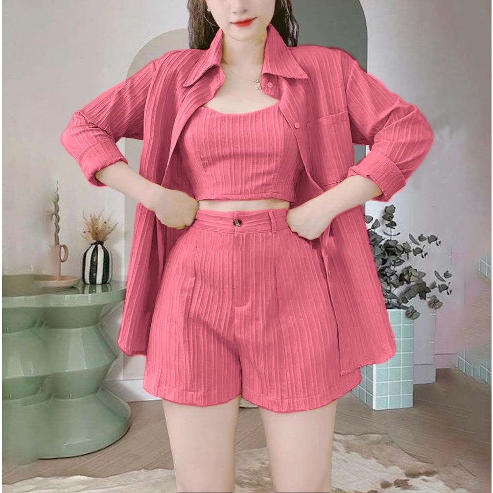 ชุดเซต3ชิ้นผ้าด๊อบบี้ เสื้อคลุม+สายเดี่ยว+กางเกง A878