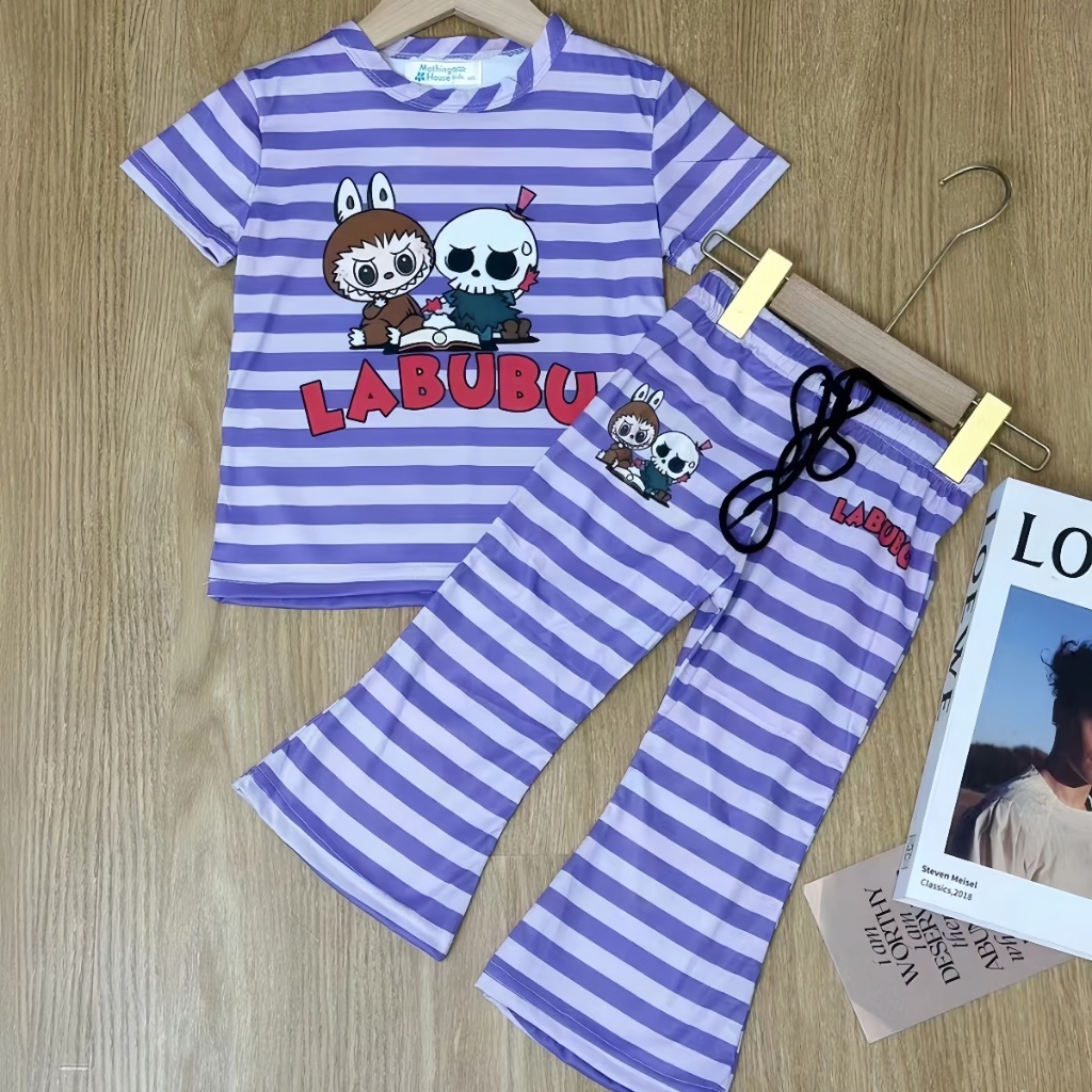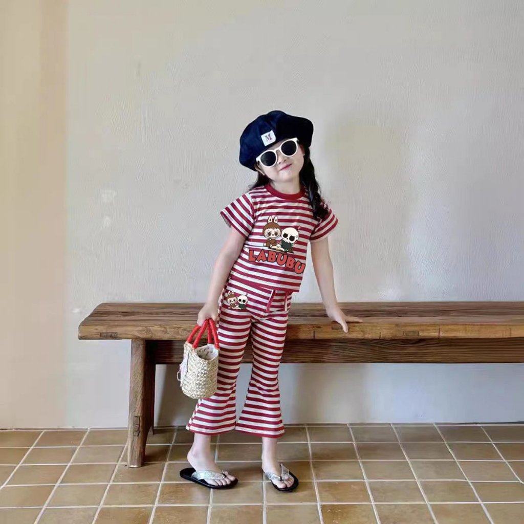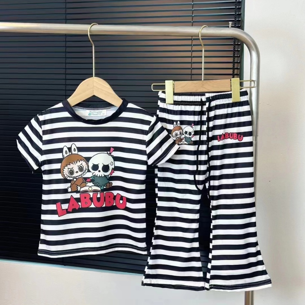 Beryl kids🌸ชุดเซ็ทแฟชั่นเด็ก🎀เสื้อแขนสั้นกางเกงขาม้า ลำลอง พิมพ์ลายลาบูบู้น่ารัก รุ่นใหม่ ฤดูร้อน