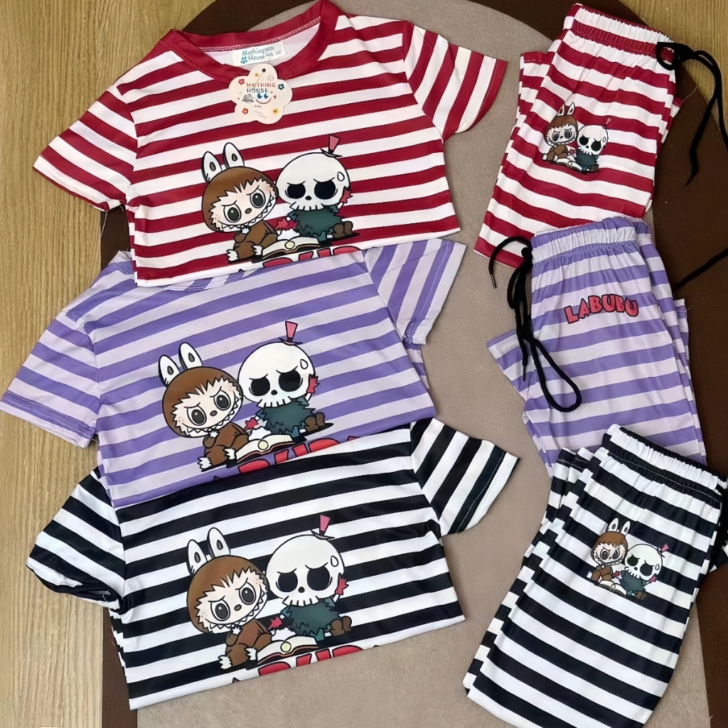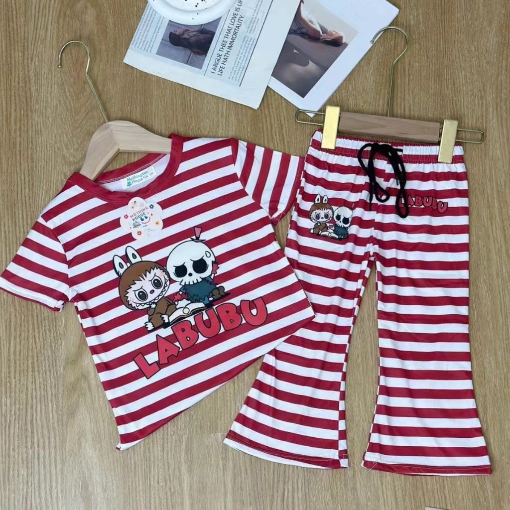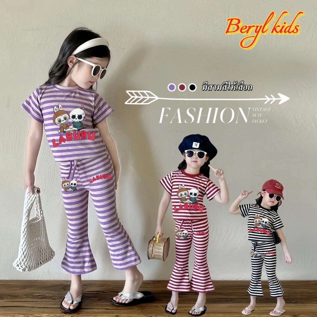 Beryl kids🌸ชุดเซ็ทแฟชั่นเด็ก🎀เสื้อแขนสั้นกางเกงขาม้า ลำลอง พิมพ์ลายลาบูบู้น่ารัก รุ่นใหม่ ฤดูร้อน