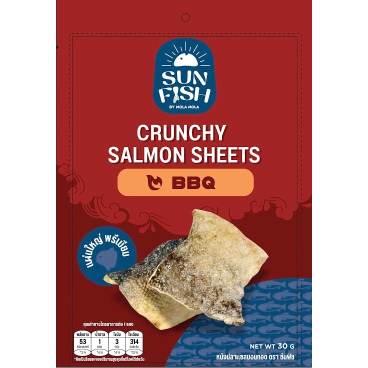 หนังปลาแซลมอนทอดอบกรอบยี่ห้อ SunFish ซันฟิช รส BBQ