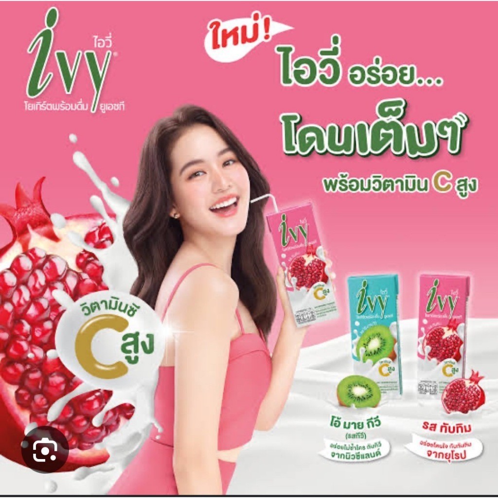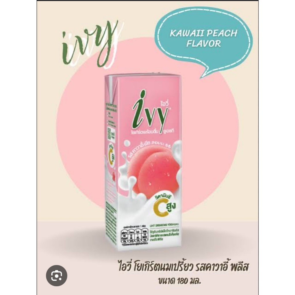 1 แพค Ivy ไอวี่ โยเกิร์ตพร้อมดื่ม UHT (มี 12 รสชาติ) ขนาด 150/180 มล. 10 รสชาติ เลือกรสได้ - รสออริจินัล - รสส้ม - รสสตอเบอร์รี่ - รสลิ้นจี่ - รสผลไม้รวม - รสพีช - รสกีวี่ - รสทับทิม - รสมิกซ์เบอร์รี่ชีสเค้ก - รสเครปเค้กส้ม -รสเบอรี่ไฟเบอร์ -รสโรสคอลลาเจน ไอวี่ โยเกิร์ตพร้อม