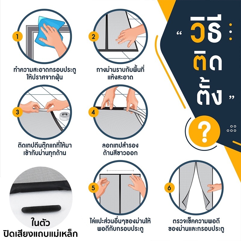 ... ์กลาส90X210🎯 📌สี: สีดำ(Black) 📌วัสดุ: ไฟเบอร์กลาส 📌ขนาด: 90x210cm (เหมาะกับ ขนาดประตู 84*208 cm ไม่นับรวมวงกบ) 🎯ไฟเบอร์กลาส100X210🎯 📌สี: สีดำ(Black) 📌วัสดุ: ไฟเบอร์กลาส 📌ขนาด: 100x210cm (เหมาะกับ ขนาดประตู 96*208 cm ไม่นับรวมวงกบ) 🎯ไฟเบอร์กลาส90X210🎯 📌สี: สีขาว(White) 📌วัสดุ: ไฟเบอร์กลาส 📌ขนาด: 90x210cm (เหมาะกับ ขนาดประตู 84*208 cm ไม่นับรวมวงกบ) 🎯ไฟเบอร์กลาส100X210🎯 📌สี: สีขาว(White) 📌วัสดุ: ไฟเบอร์กลาส 📌ขนาด: 100x210cm (เหมาะกับ ขนาดประตู 96*208 cm ไม่นับรวมวงกบ) ✨ใช้กั้นประตูภายในบ้านให้เป็นสัดส่วน ✨บ้านที่ชอบเปิดหน้าต่าง ประตูเพื่อรับลม แต่ต้องเผชิญกับปัญหายุง แมลง ✨พาหะของโรคไข้เลือดออก ✨ถอดซักล้างทำความสะอาดง่าย ✨แพคเกจประกอบด้วย 1 * ม่านประตู 1 * ตีนตุ๊กแก 1 * แถบกาว 3M 14 * หมุดดูดแม่เหล็ก 💥ใส่ใจ💥 เนื้อผ้าของร้านเป็นผ้าหนาๆแตกต่างจากแบบอื่นๆตามท้องตลาดซึ่งถือว่าดีมาก ผลิตจากวัสดุไฟเบอร์กลาส กันไฟ กันรอยแมว