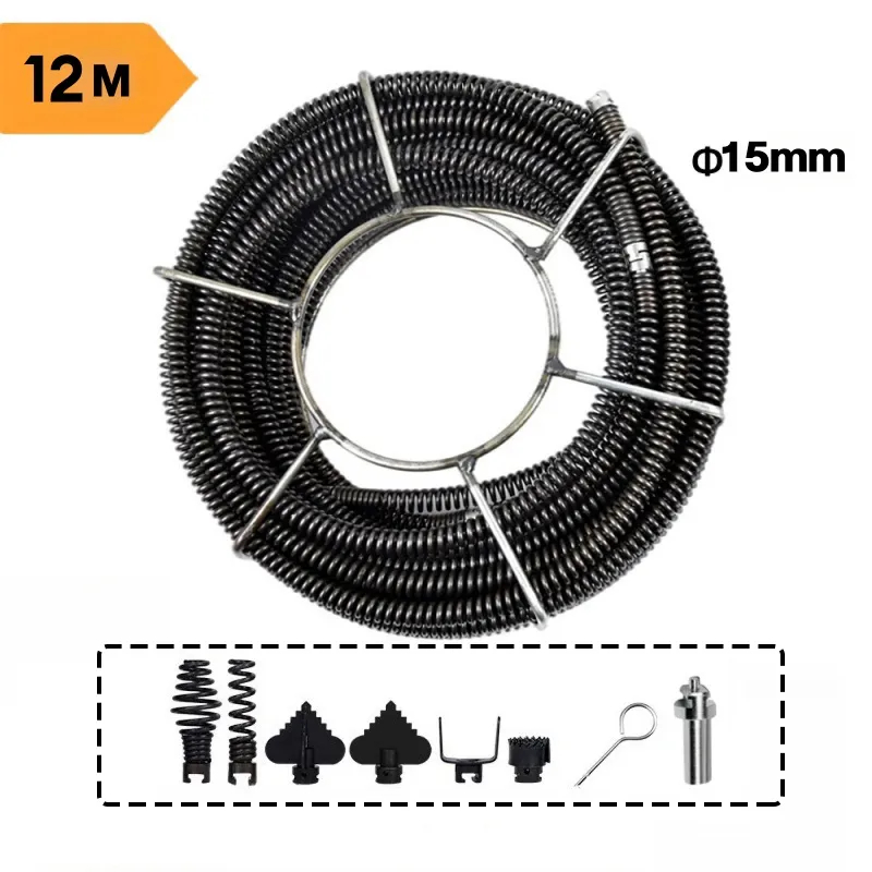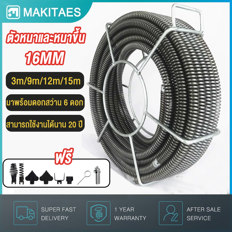 งูเหล็ก12M งูเหล็กใช้กับสว่านนมือไฟฟ้า ลวดสปริงทะลวงท่อ ทะลวงท่อตัน เส้นผ่านทะลวงท่อตัน ศูนย์กลาง16MMมีความยาว15