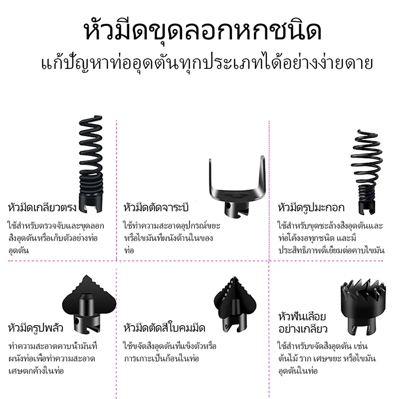 ... กท่อ ⭐ วัสดุ: เหล็กแมงกานีส ⭐ เส้นผ่านศูนย์กลางสปริง: 10 มม(เท่านั้น งูเหล็ก ไม่มีอุปกรณ์เสริม) ⭐ เส้นผ่านศูนย์กลางสปริง: 16 มม(พร้อมอุปกรณ์เสริม) ⭐ ความยาว: 3/6/9/12/15มตร ⭐ ใช้ได้กับท่อขนาดตั้งแต่ 1.1/2นิ้ว -4นิ้ว (40มม. - 100 มม.) ⭐ มีหัวทะลวง ให้เลือกใช้ถึง 6 แบบ ปรับใช้ไปตามลักษณะท่อที่อุดตัน ⭐ มีตัวเชื่อมแบบพิเศษ สามารถใช้ต่อกับสว่านมือไฟฟ้าทั่วไปได้ทุกยี่ห้อ ⭐ หลังจากใช้งาน ควรทำการล้างทำความสะอาด วางให้แห้งสนิท ทาด้วยน้ำมันกันสนิมเพื่อป้องกันสนิมก่อนเก็บเข้าโรลสายสปริง -------------------------------------------------------------------------------------- - ใช้สำหรับ ทะลวง หรือขจัดสิ่งอุดตันในท่อน้ำทิ้ง ทั้งท่อน้ำทิ้งซักล้าง ล้างจาน หรือ สุขภัณฑ์ - เช่น ไขมัน เส้นผม ไม้ เศษหิน ดิน ทราย ถุงพลาสติก ใช้งานง่าย ไม่ยุ่งยาก -------------------------------------------------------------------------------------- 🌹คุณควรทำอย่างไรหากมีสิ่งผิดปกติในบรรจุภัณฑ์ของคุณ? เพื่อนรักโปรดอย่ากังวล โปรดส่งรูปถ่ายของรายการมาให้ฉันและบอกฉันว่าอะไรคือปัญหาของสินค้าที่คุณได้รับ หากจำนวนสินค้าขาดหายไปหรือสินค้าเสียหาย ฉันจะตรวจสอบกับเจ้าหน้าที่คลังสินค้าก่อน จากนั้นฉันจะคืนเงินหรือส่งสินค้าให้คุณอีกครั้งเพื่อเป็นการชดเชยของเรา โปรดอย่าให้ความเห็นที่ไม่ดีหรือการให้คะแนนที่ไม่ดีแก่เราทันที ติดต่อเราก่อนและเราจะให้ทางออกที่น่าพอใจ 💕ขอบคุณสำหรับความเข้าใจของคุณค่ะ ---------------------------------------------------------- 🌺หากคุณได้รับแพ็คเกจของคุณและชอบสินค้านั้น 👍โปรดให้คะแนนระดับห้าดาวแก่ฉัน⭐⭐⭐⭐⭐พร้อมรูปถ่ายและวิดีโอเพื่อแสดงผู้ซื้อรายอื่น หากคุณซื้อสินค้าอื่น ๆ ในร้านของฉันในครั้งต่อไป แชทกับฉันก่อนสั่งซื้อเพื่อรับส่วนลดพิเศษ! 🌹ขอบคุณสำหรับการสนับสนุน