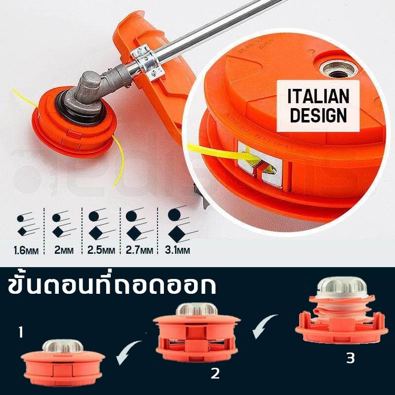 หัวกระแทก กระปุกเอ็นตัดหญ้า อลูมิเนียม ปล่อยสายเอ็นอัตโนมัติ อิตาลี ดีไซน์ จานเอ็นตัดหญ้า เปลี่ยนเชือกโดยไม่ต้องถอดประกอ