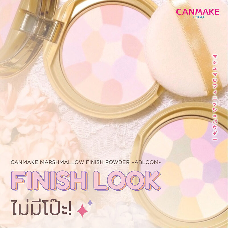 Cr.facebook.com/canmakethailand Cr. facebook.com/CANMAKE.TOKYO Canmake Marshmallow Finish Powder Abloom Refill 4gแป้งโปรงแสงเนื้อละเอียดเนียนนุ่ม ดุจมาร์ชแมลโล่ แบบรีฟิล ช่วยดูดซับความมัน สร้างเอฟเฟกต์ผิวสวยกระจ่างใสเป็นธรรมชาติด้วยเนื้อแป้ง 5 เฉดสี •แป้งโปรงแสงไม่ผสมรองพื้น เนื้อสัมผัสบางเบา เ